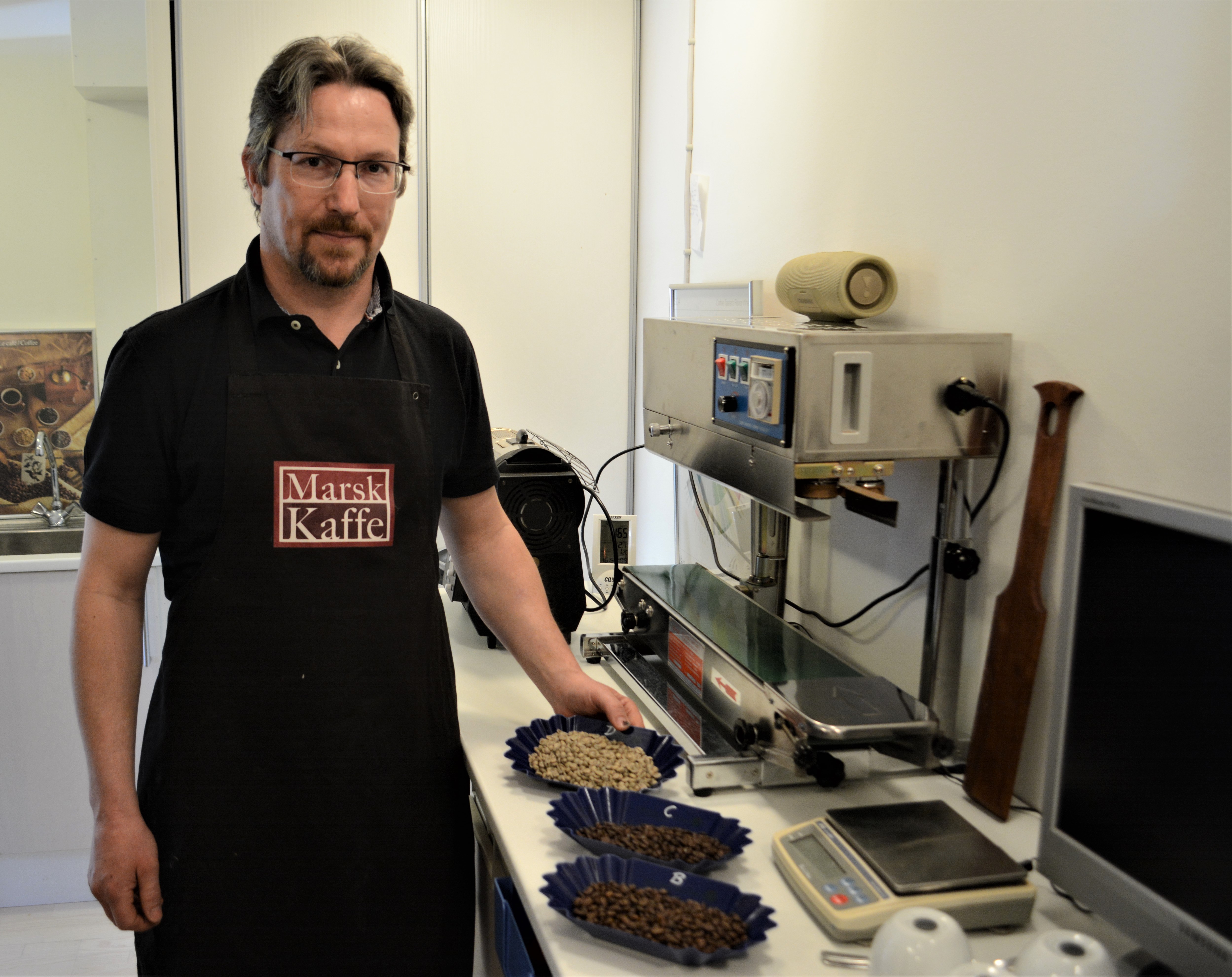 – Jeg fik LAG-midler til at starte firmet for, men investeringerne var så store, og det gik så langsomt, at renterne åd lagmidlerne. Så jeg måtte tage arbejde ved siden af, og i dag arbejder jeg som geolog ved siden af risteriet. Men jeg mærker en stigende interesse for min kaffe, der primært sælges til cafeer og restaurationer under normale omstændigheder. Men i disse tider er kunderne mest private.