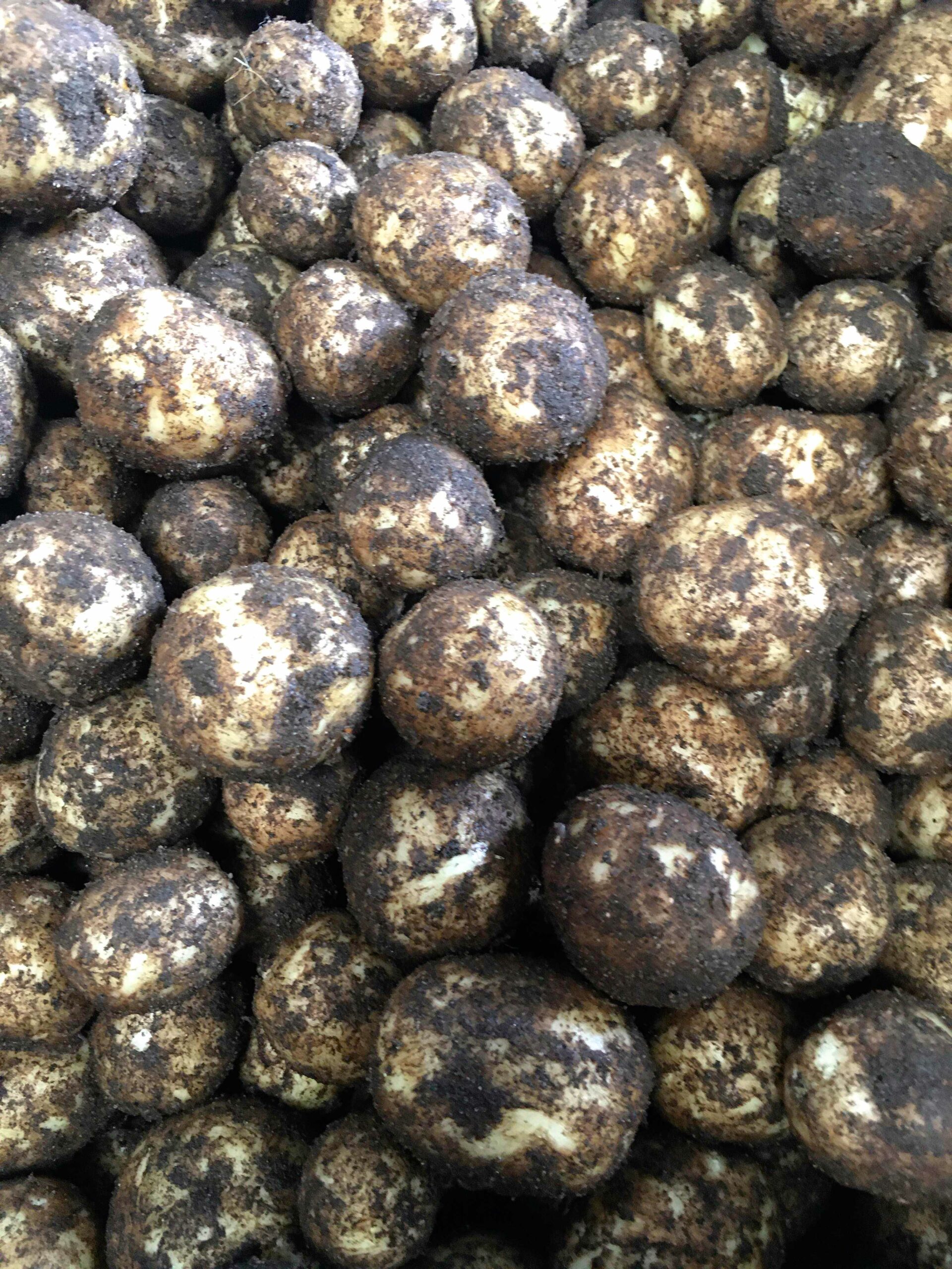 Så lykkedes det for landmand Klaus Forum at få de første nye kartofler op af jorden. En regnfuld april med nattefrost – en kølig maj og en periode med regn, regn og regn gjorde arbejdet vanskeligt på marken. – Ja, det var faktisk så galt, at Klaus´ far Hans Erik på 85 år måtte i gang med en ekstra traktor foran kartoffeloptageren, siger Maja Lauridsen, der kan oplyse, at der nu er nye kartofler til salg i boden på Ribe Landevej ved Gredstedbro.