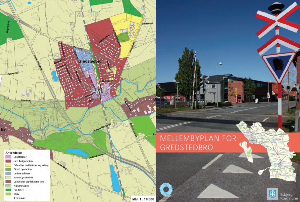 Esbjerg Kommune godkendte i september 2017 en 72-sidet MELLEMBYPLAN for GREDSTEDBRO udarbejdet af firmaet Bascon fra Århus – nu en del af COWI.