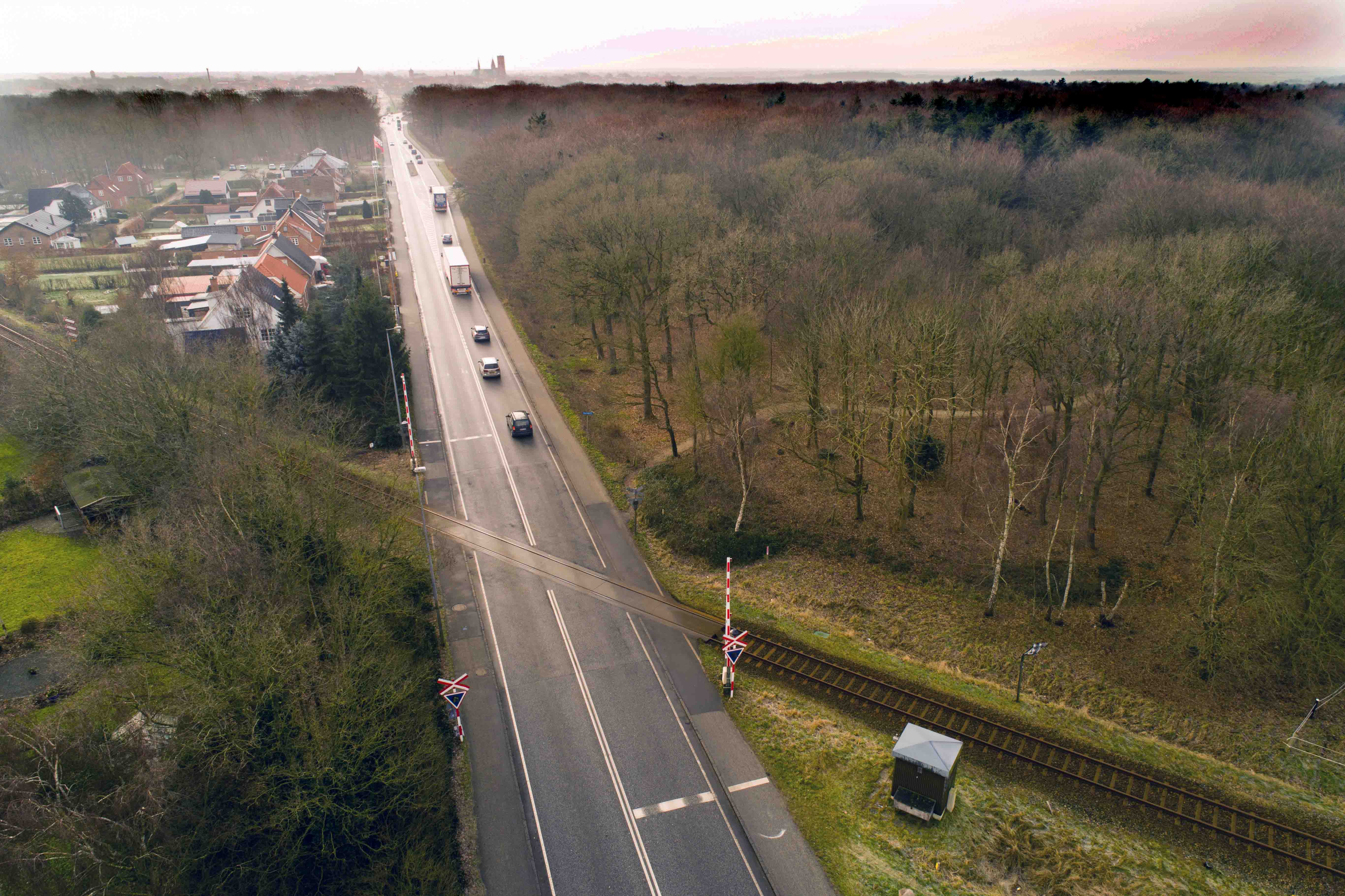 Det er planen, at arbejdet øst for den nuværende hovedvej først påbegyndes senere – her skal der jo etableres en kombineret ”privat” / stillevej med cyklende trafik. Der skal desuden nær jernbanen laves en vendeplads, der har en dimension, så også renovationsbiler kan vende. Endelig er der anlægsarbejdet omkring Skovgrillen.