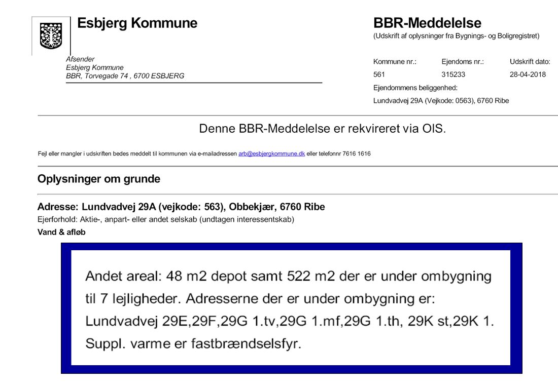 Der bor to personer på adressen, som ifølge BBR meddelelsen er under ombygning til 7 lejligheder. Den gamle skole har desuden en gammel skoleinspektørbolig, som er i så ringe stand, at den burde rives ned, fortæller lejeren, som fremviste fri udsigt til himlen gennem defekte vinduer i husgerningslokalet på 1. sal samt massive skimmelsvampangreb. Nh Ejendomme Aps, Glejbjerg, ejer Obbekær Skole.