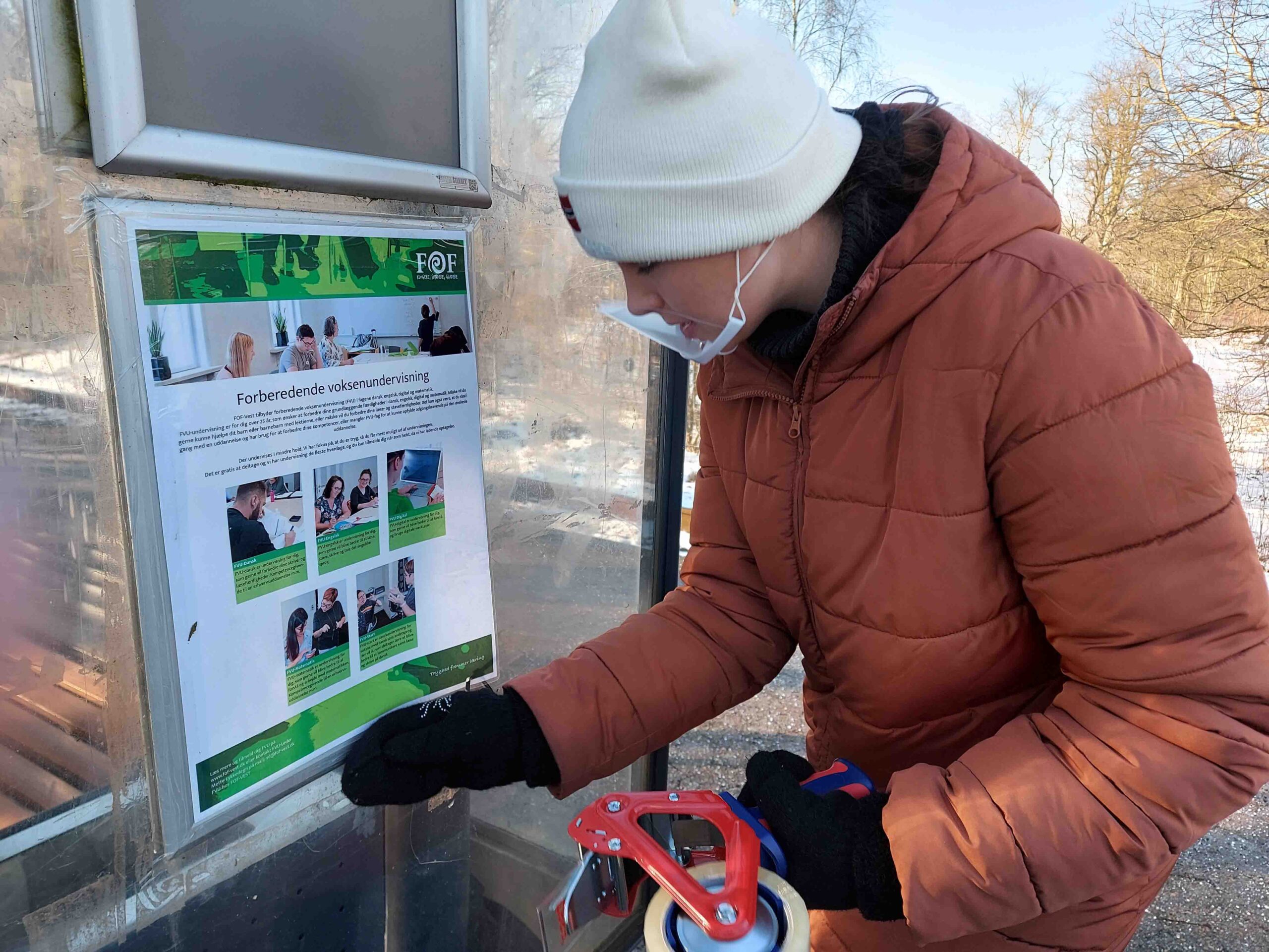 Fra morgenstunden i fredags rejste FVU lederen Mette Lykkedegn og sin kollega Mayken Henriksen rundt til alle landsbyer syd for Esbjerg med plakater til opslagstavler – som hun sagde inden det gik løs: – Vi vil besøge så mange steder som muligt – og skal nok sende nogle optagelser fra turen til RYK IND RIBE.