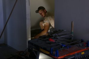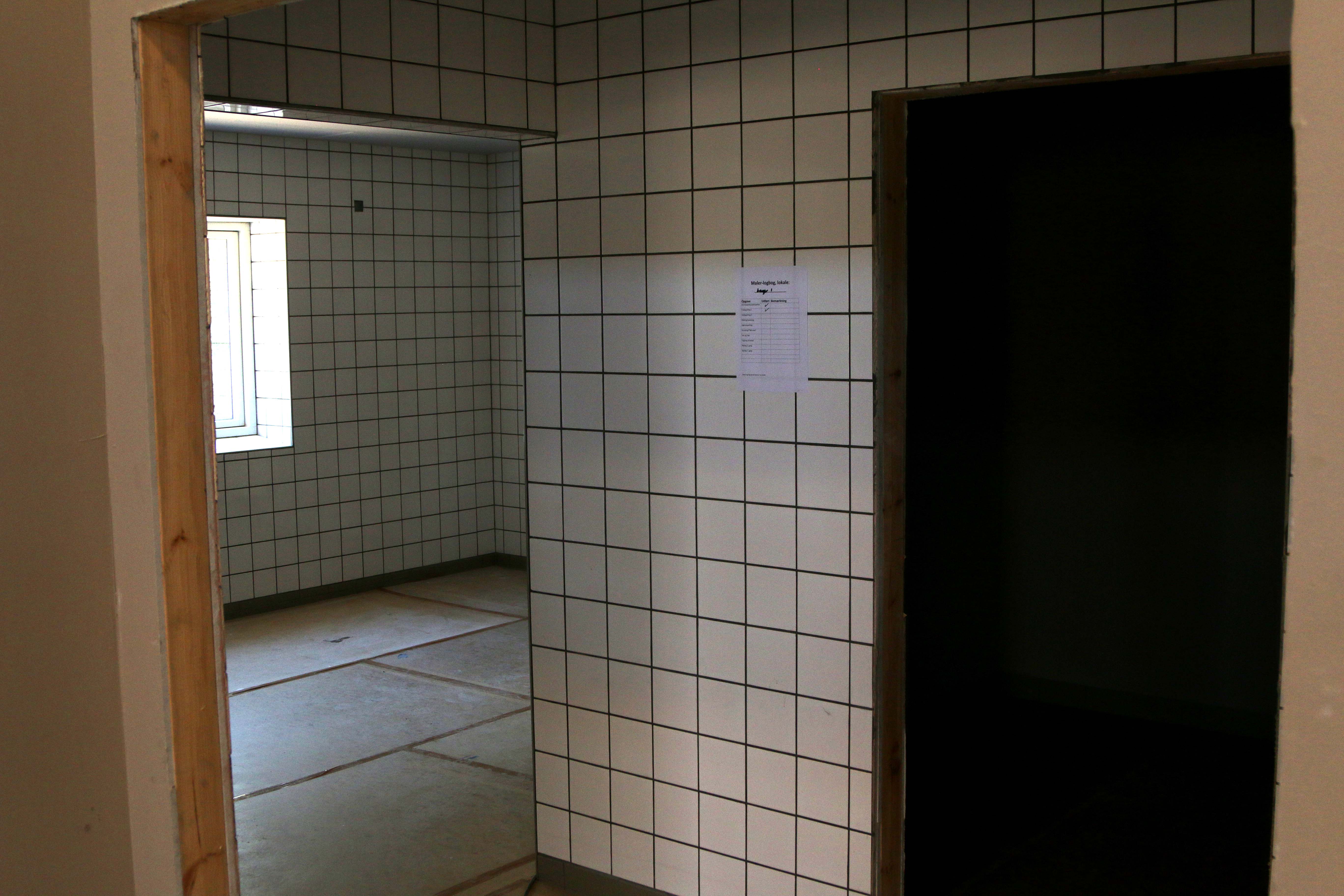 To frivillige var i gang i køkkenområdet – lofterne afventer beklædning med troldtekt