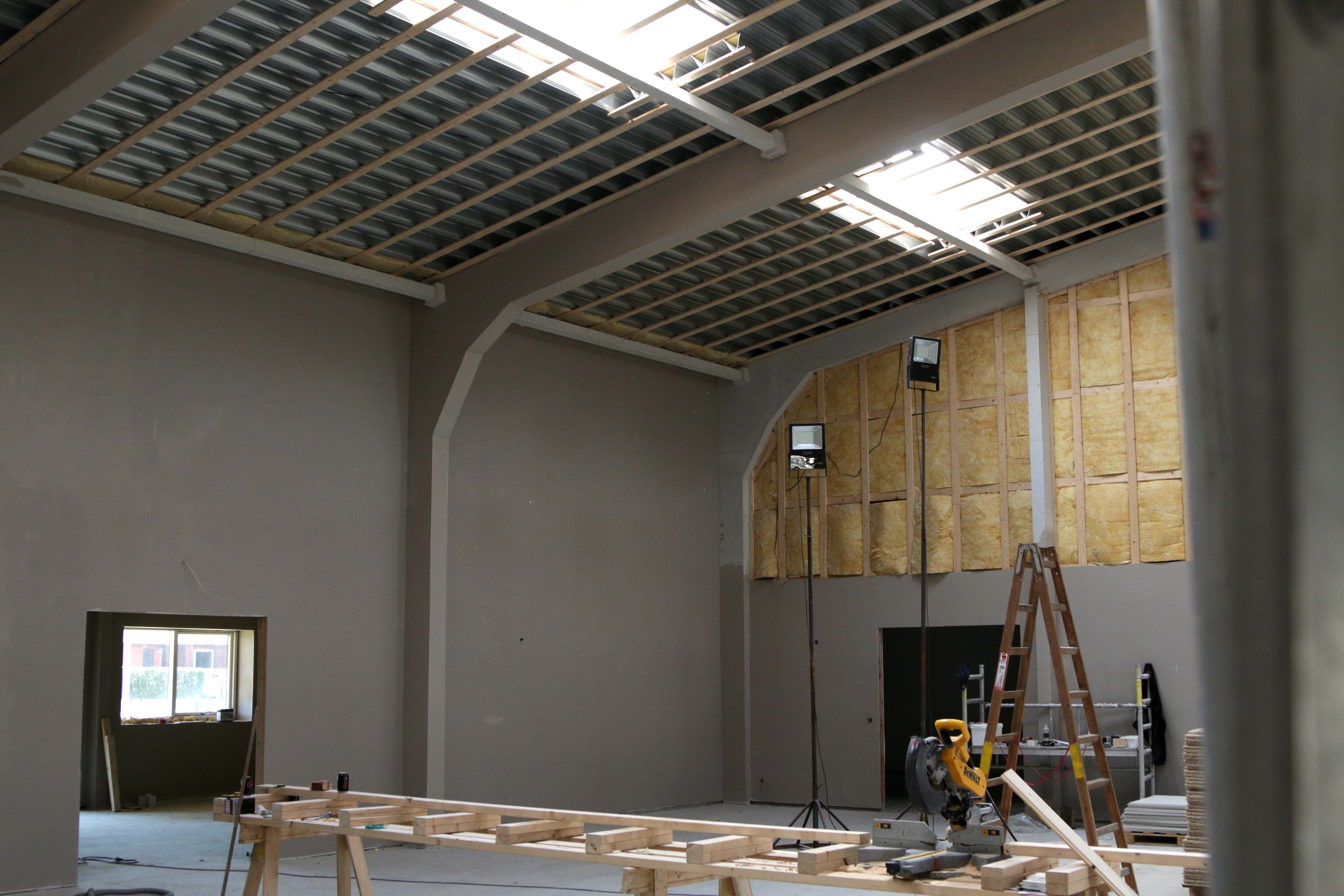 Arbejdet er forholdsvis langt i den store sal