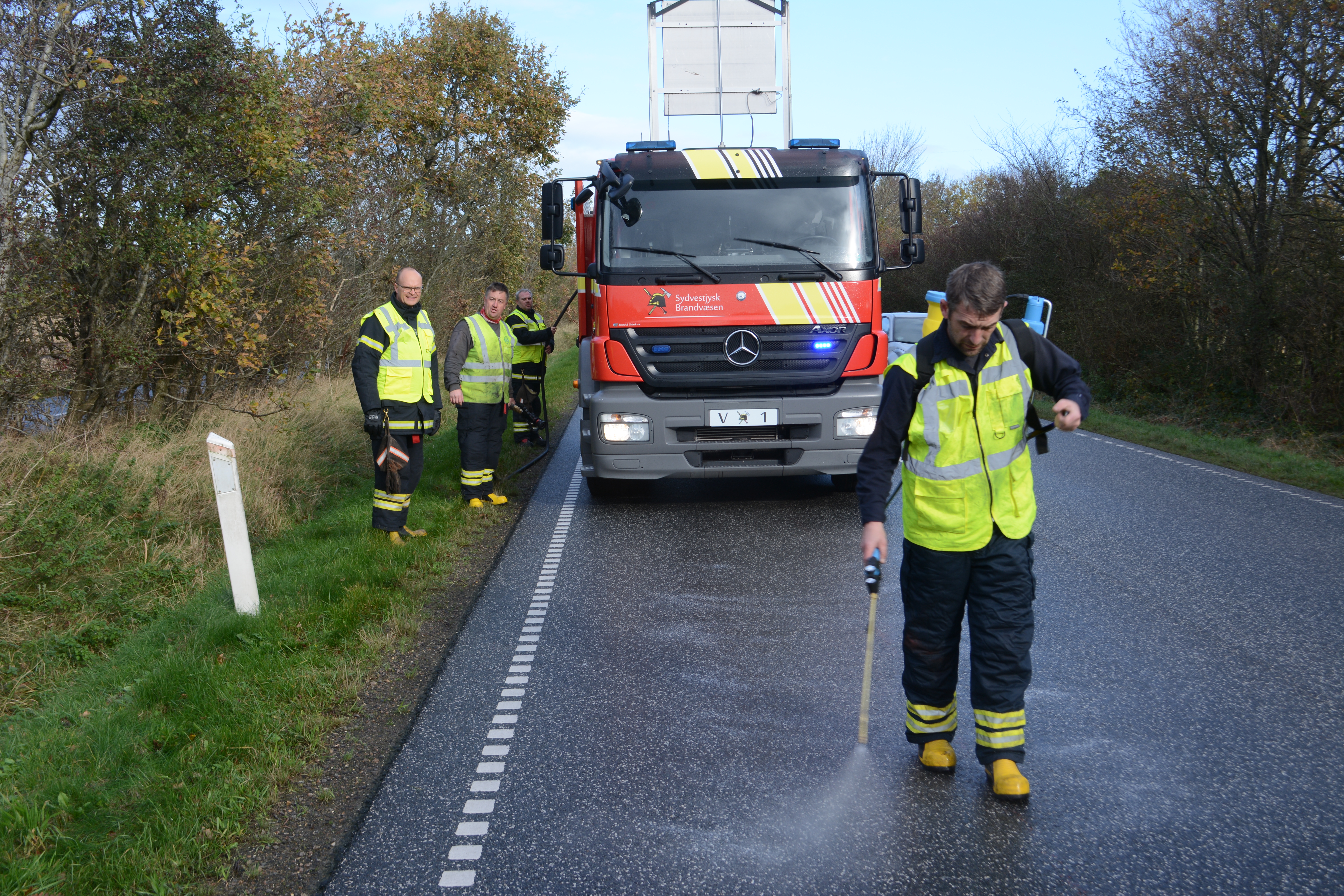 Sydvestjysk Brandvæsen måtte ud og rense vejen.