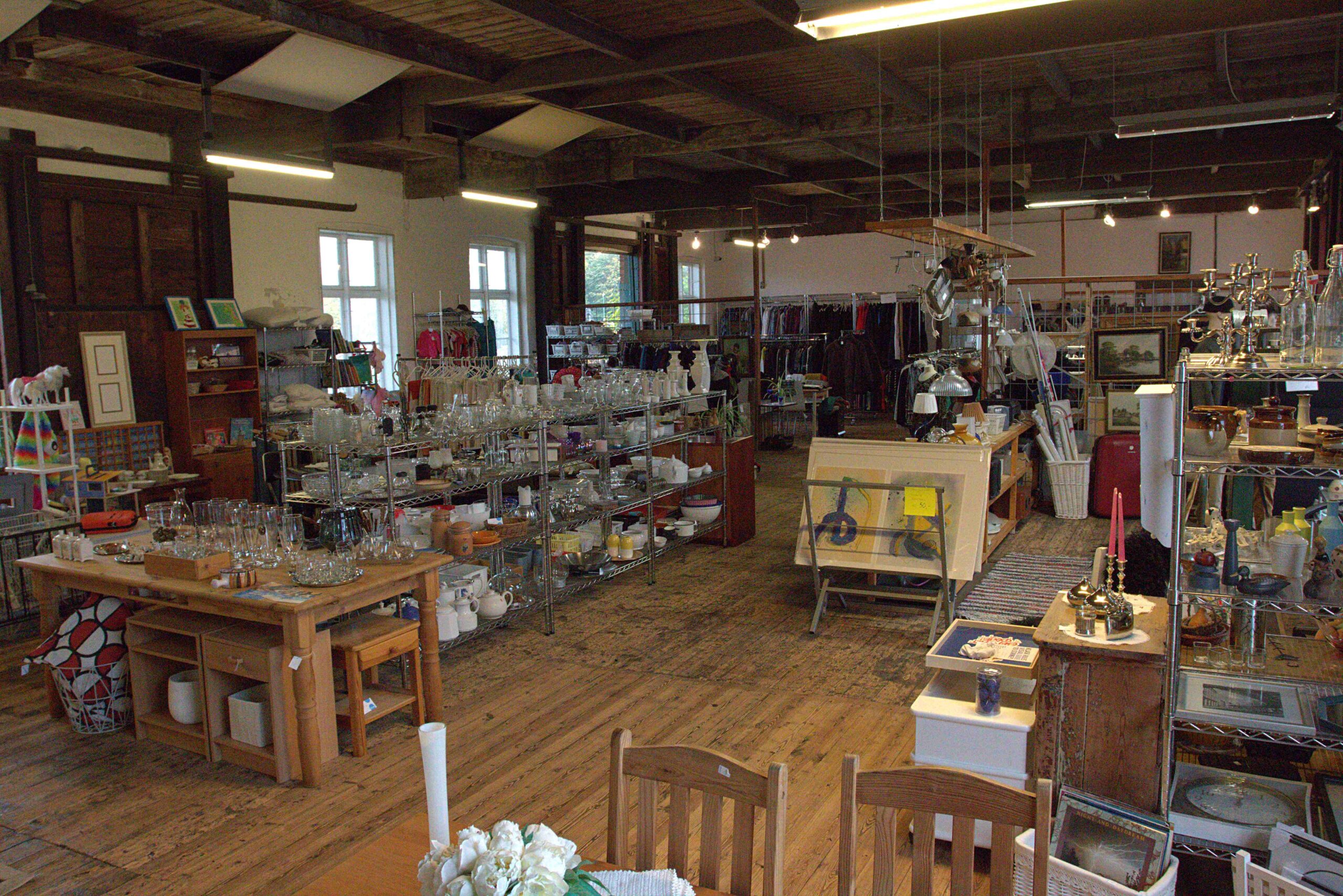 Der er masser af varer i Genbrugsbutikken, så se forbi og oplev de fantastiske, historiske rammer.