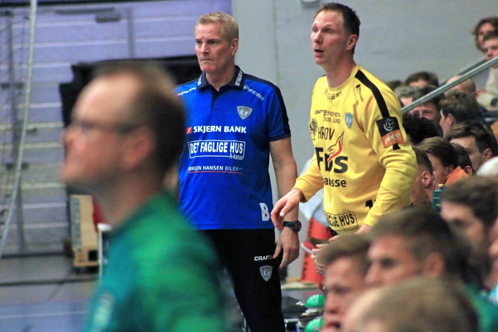 Samarbejdet mellem cheftræner Lars Walther og målmand Søren Rasmussen kræver koncentration under 7 mod 6 spillet