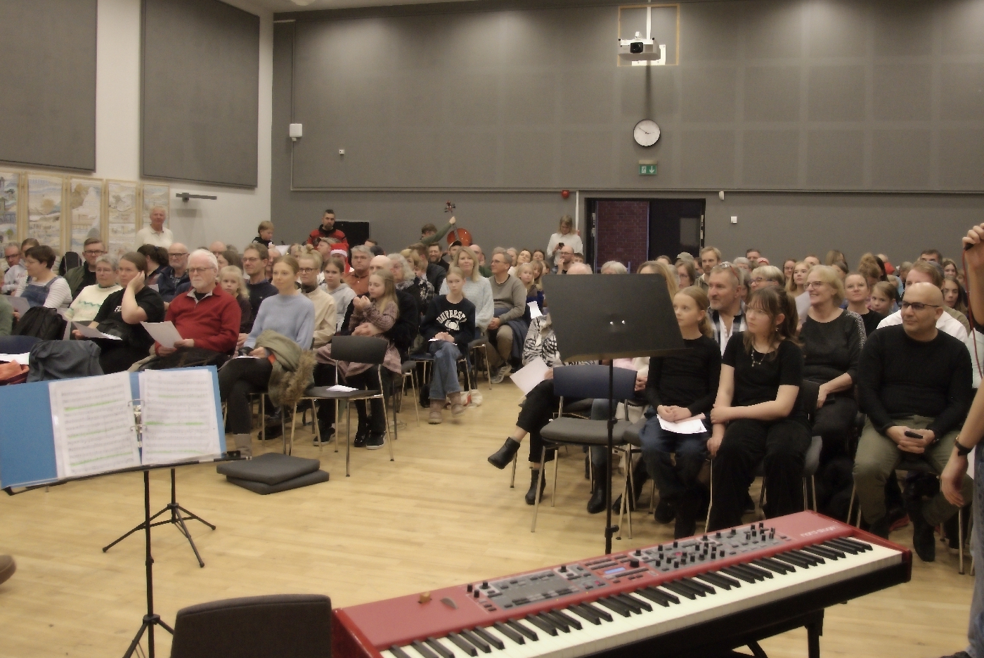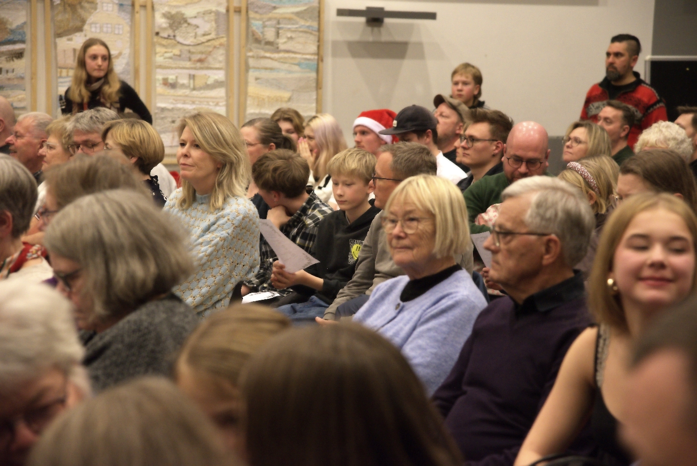 Til aftenens julekoncert i Esbjerg Kulturskoles Ribe-afdeling var der så mange gæster, at der måtte sættes to ekstra rækker stole op. Der stod sågar tilskuere uden for døren ind til fællessalen i Seminariehuset. Temperaturen i salen var på kogepunktet.