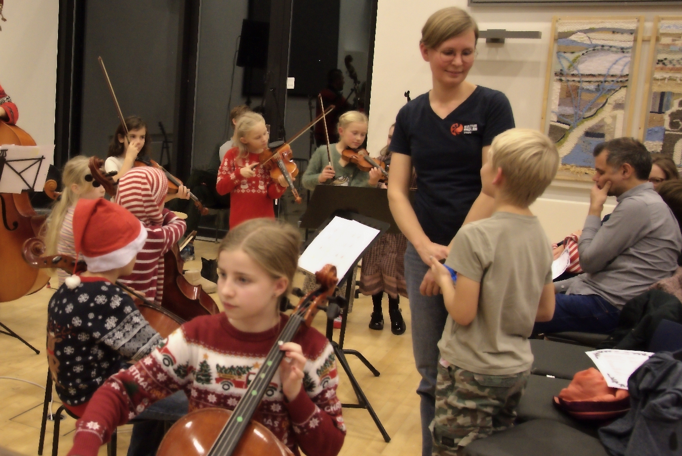 Til aftenens julekoncert i Esbjerg Kulturskoles Ribe-afdeling var der så mange gæster, at der måtte sættes to ekstra rækker stole op. Der stod sågar tilskuere uden for døren ind til fællessalen i Seminariehuset. Temperaturen i salen var på kogepunktet.