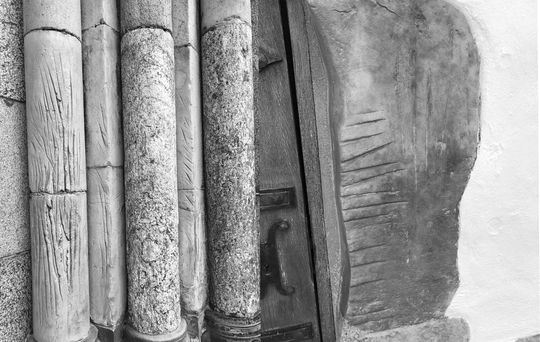 Hvad er så forklaringen på de aflange ridser på søjlerne ved døren i den nordøstlige ende af Ribe domkirke (og andre steder på/i domkirken) og for så vidt også sandstenen i Sankt Nikolai kirke i Farup? Her til svarer Morten Søvnsø: