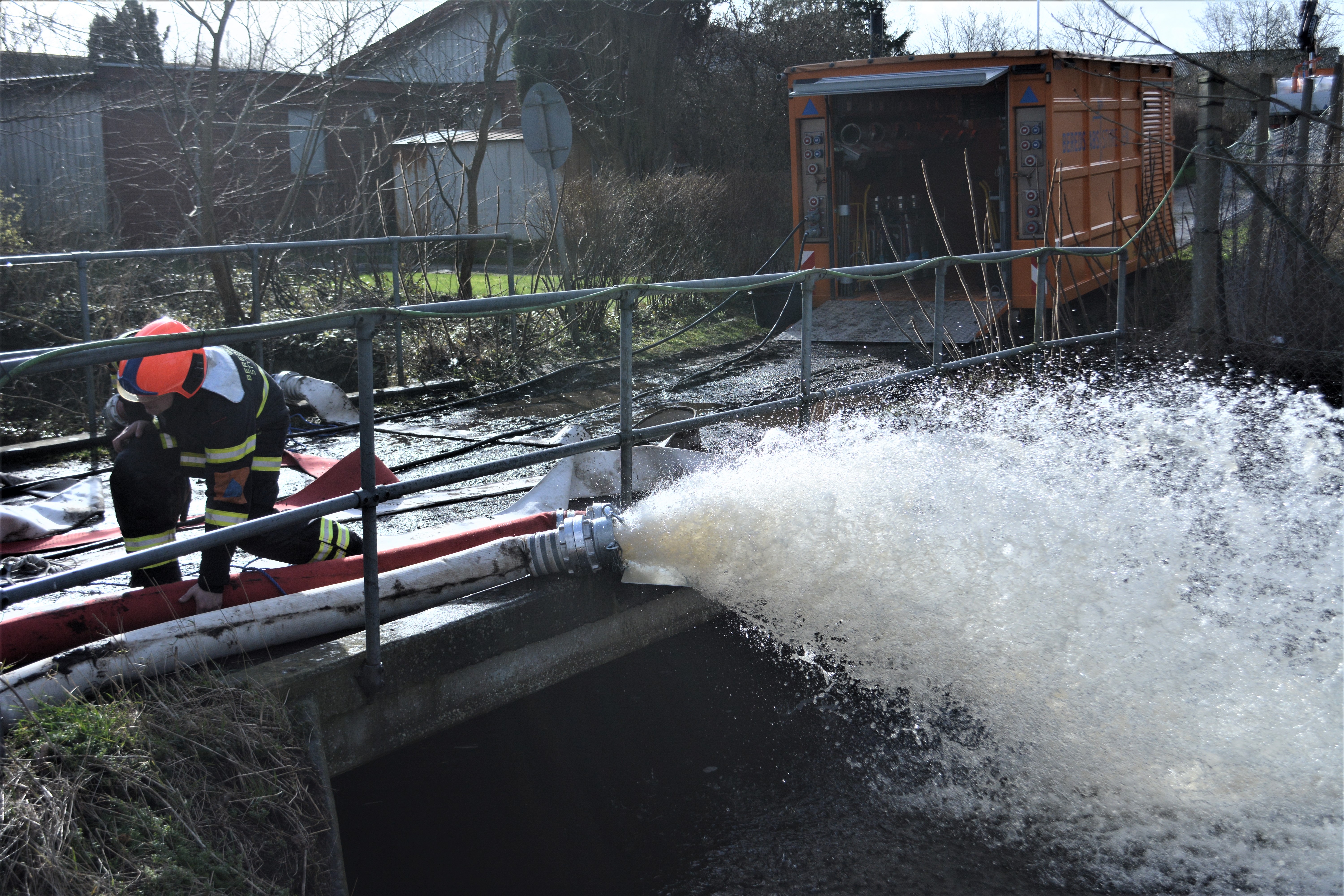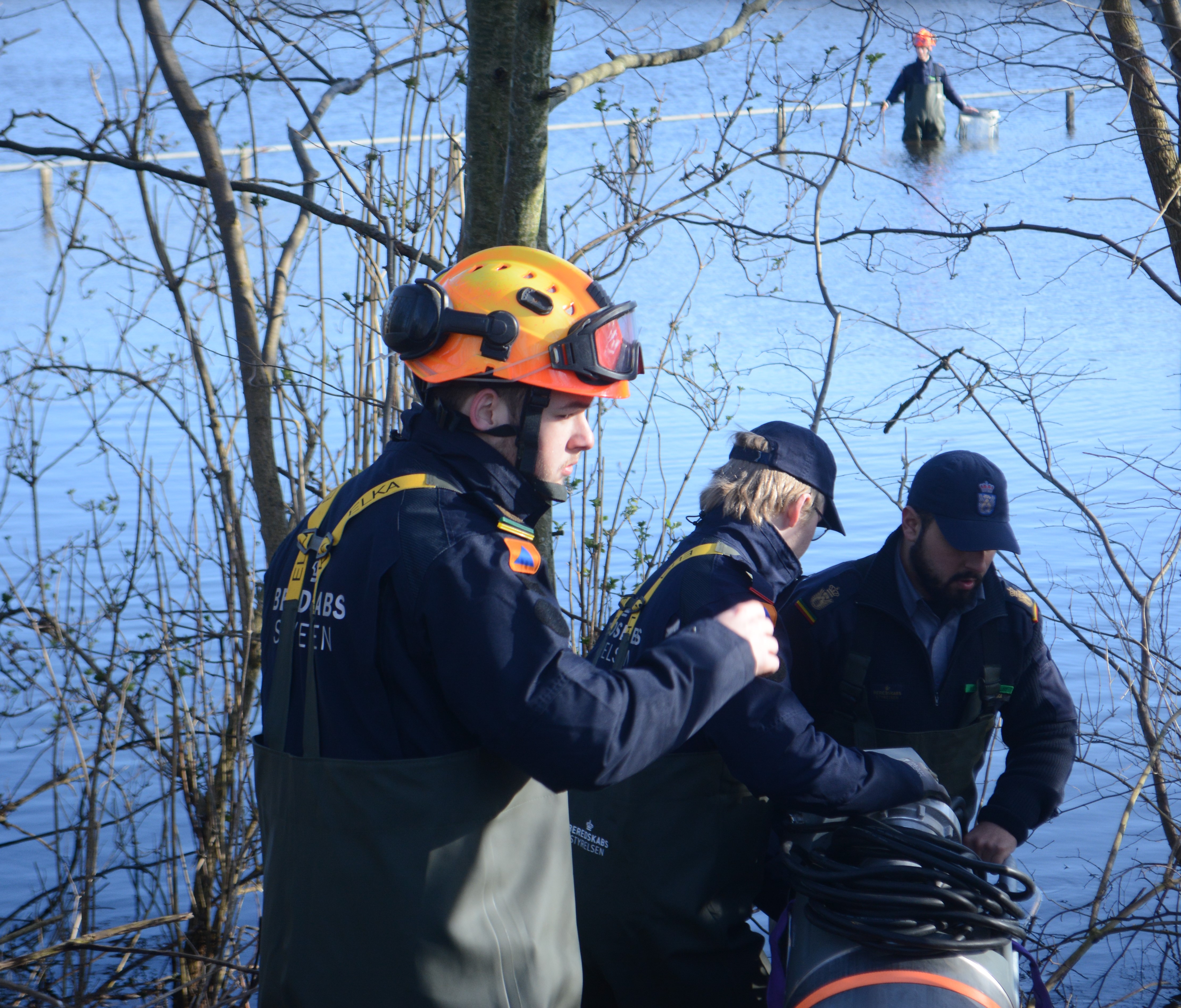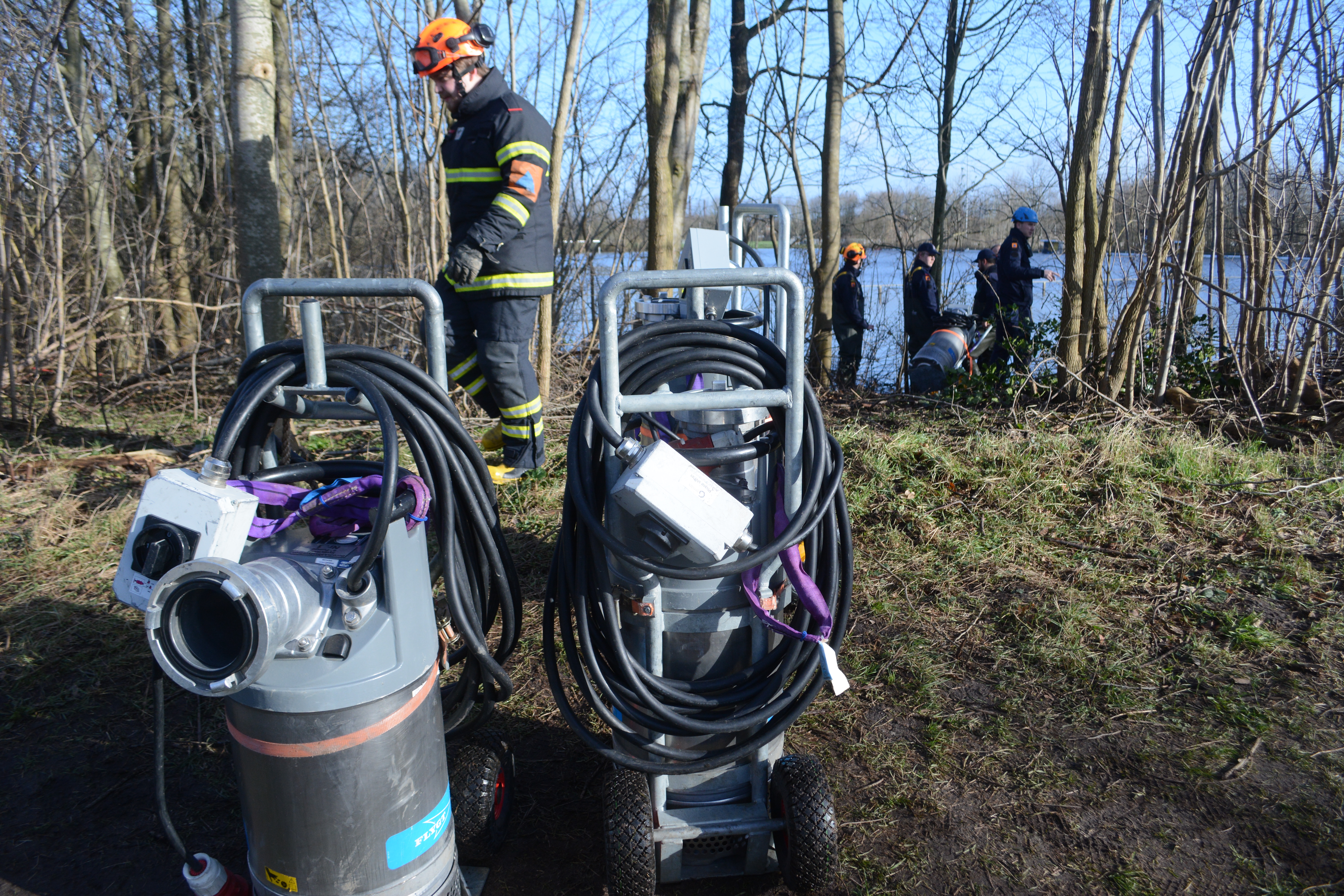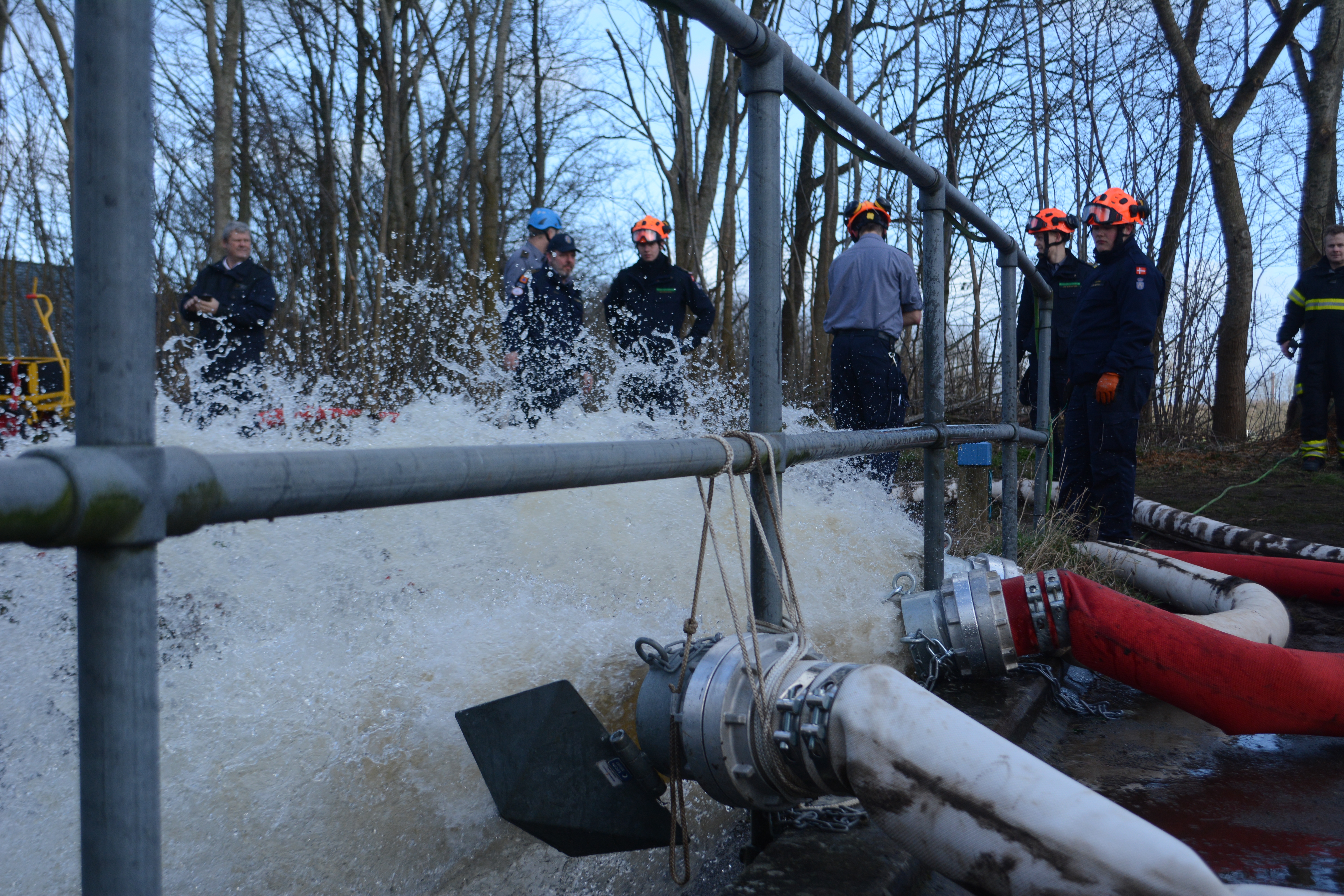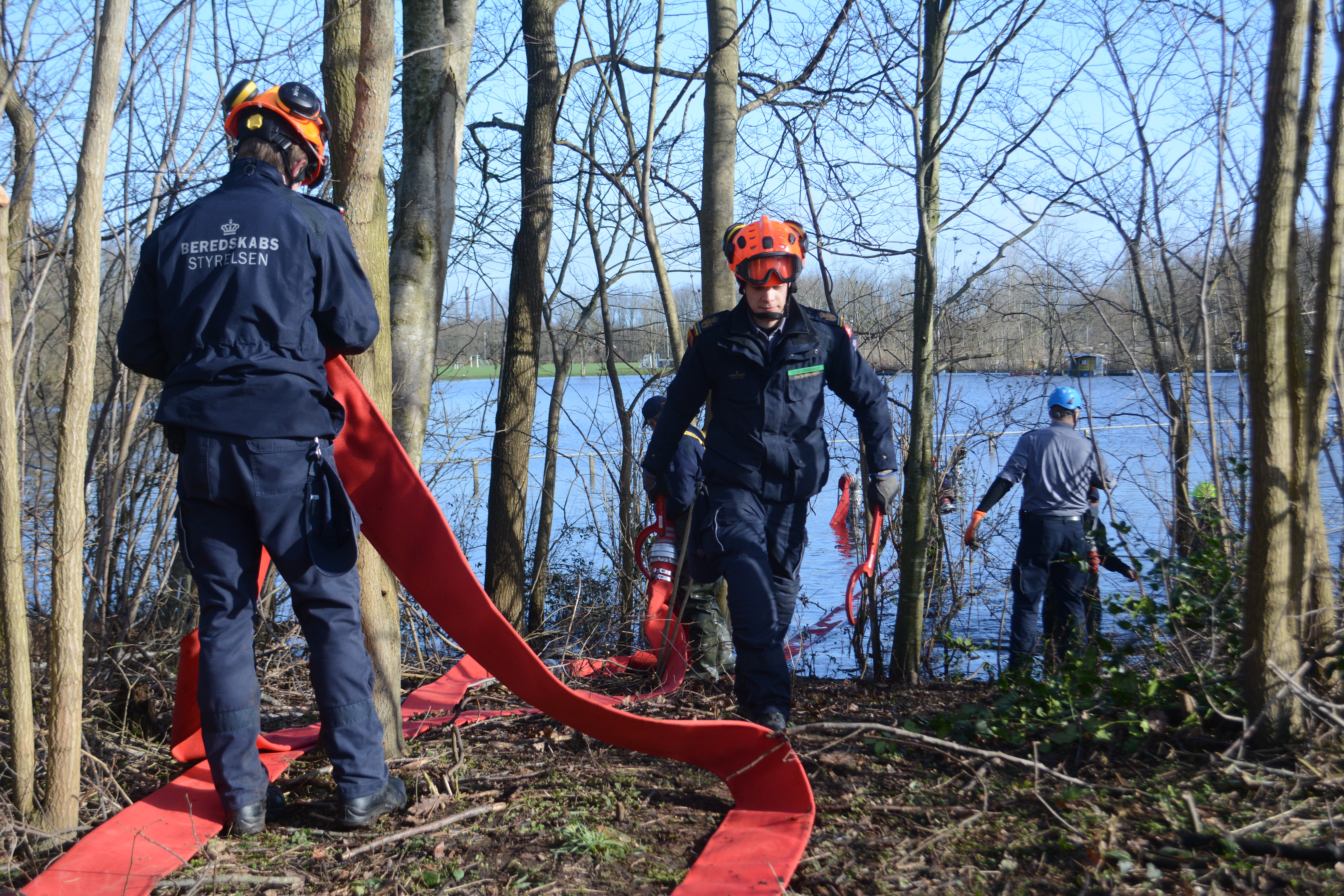 17 personer fra Beredskabsstyrelsen med to store og flere mindre køretøjer var sat ind i arbejdet, og der blev anvendt seks store pumper, der fik elektricitet fra to store generatorer på hver sin lastbil.