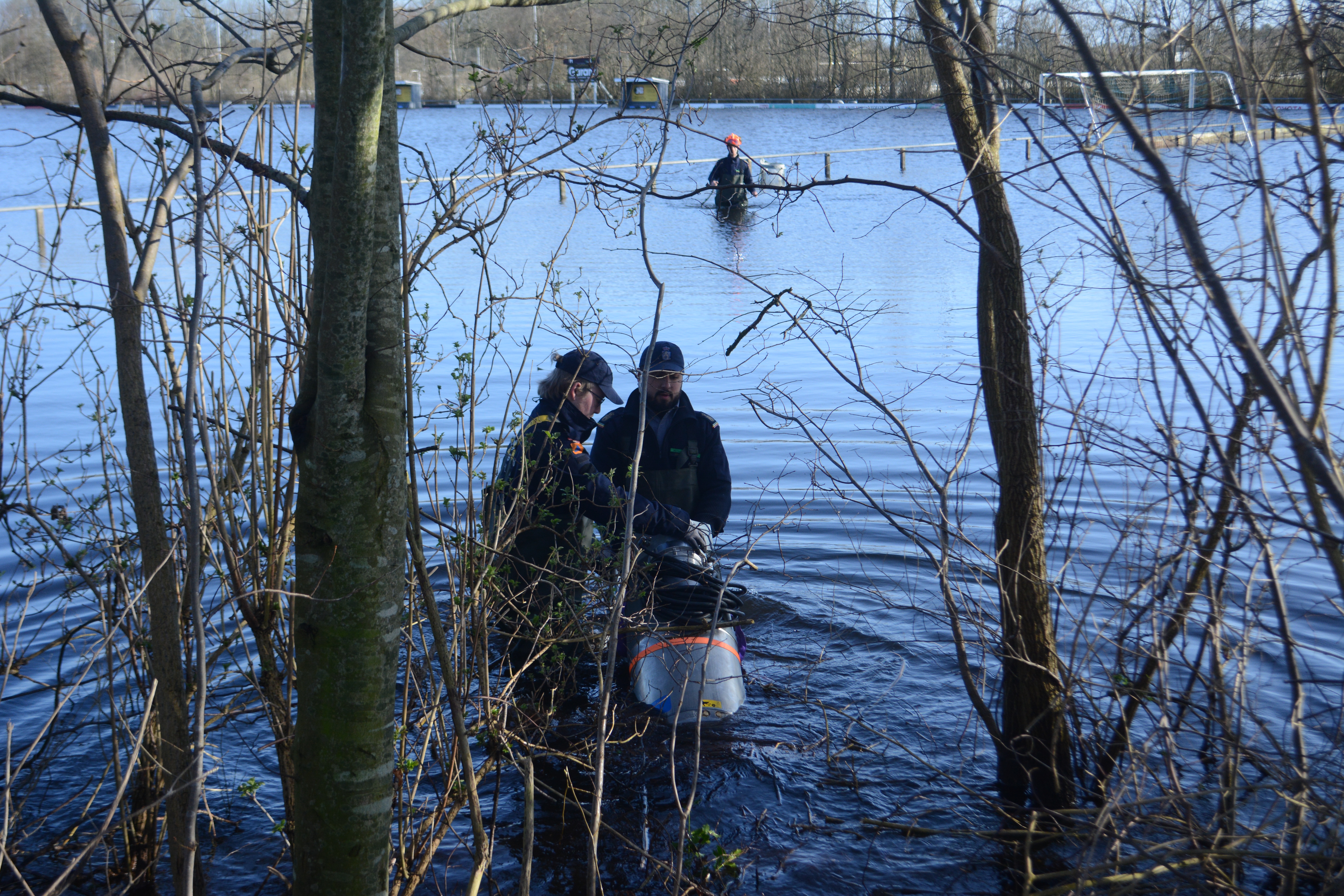 Chefsergent Ulrik Mosekjær anslår, at der stod mellem 7,5 og 9 millioner liter vand på boldbanerne, før Beredskabsstyrelsen gik i gang med at pumpe.