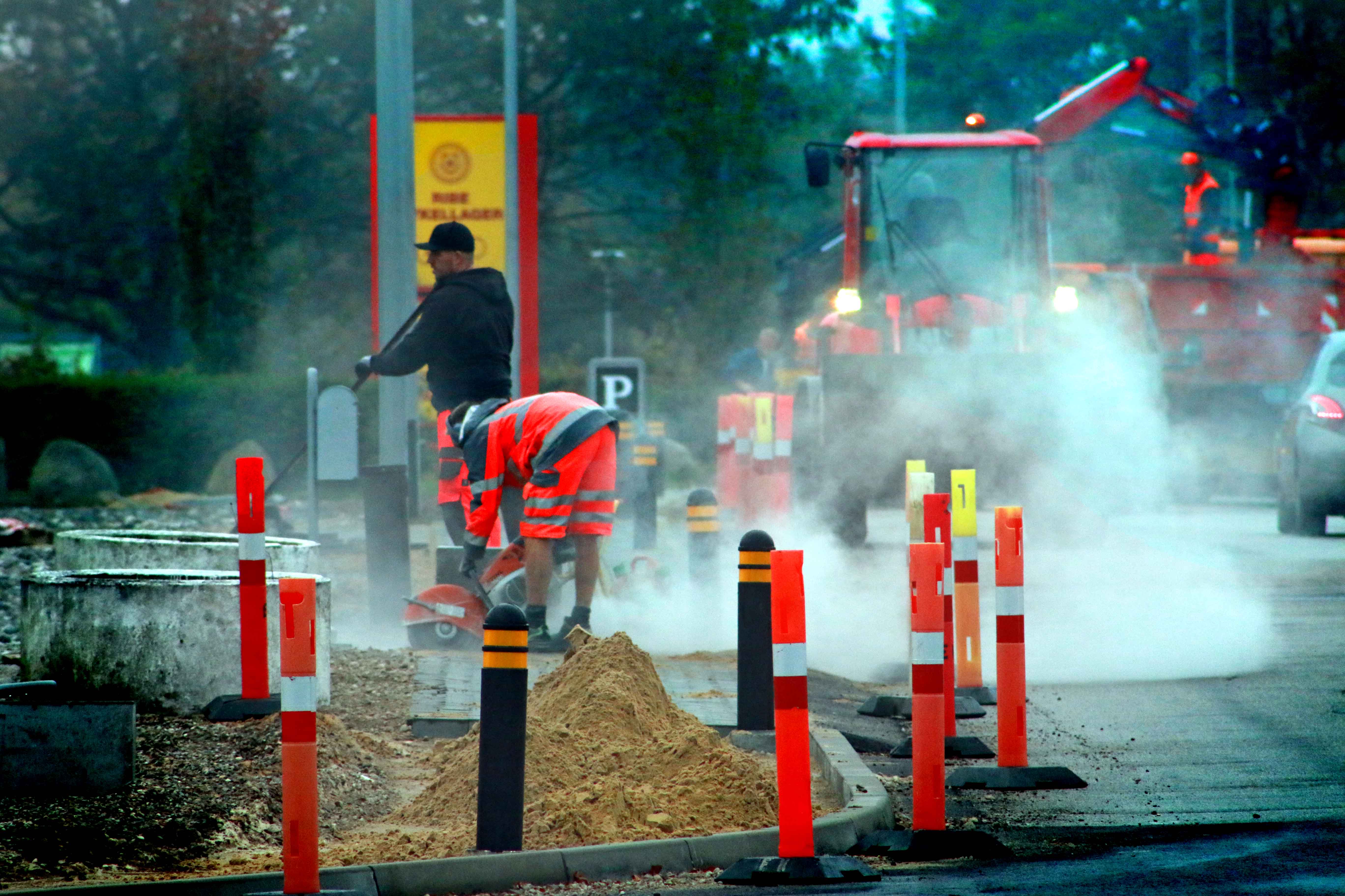 I øjeblikket arbejder man på den nordlige og østlige side af vejen, hvor af- og pålæsning af materialer kan give mindre kødannelser – især i morgentrafikken. Dette arbejde vil formentlig være afsluttet i løbet af 14 dage, da der er flere strækninger, som er omlagt tidligere.