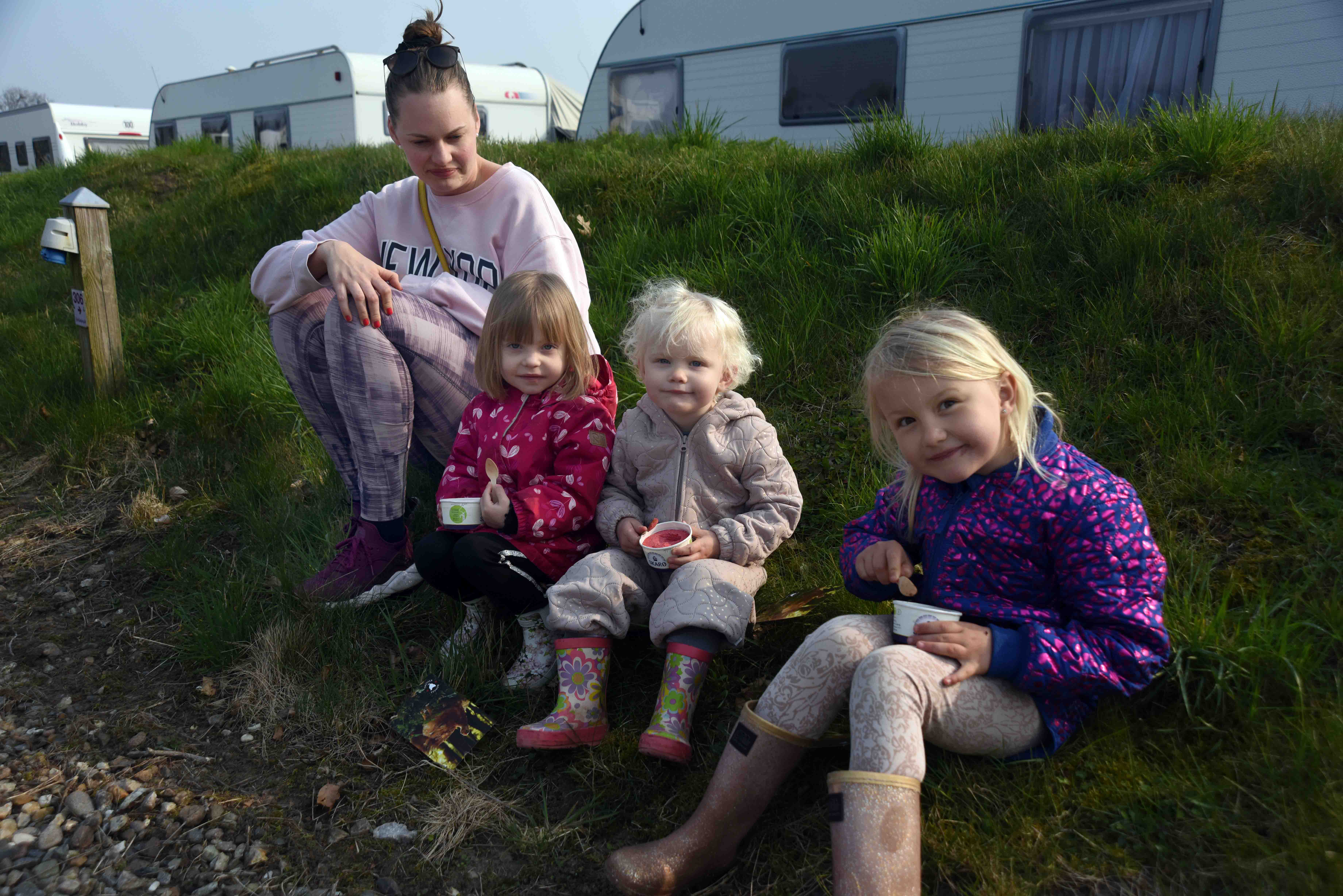 Cecilie fra Klostermarken havde taget børnene Clara, Vera og Ella med.