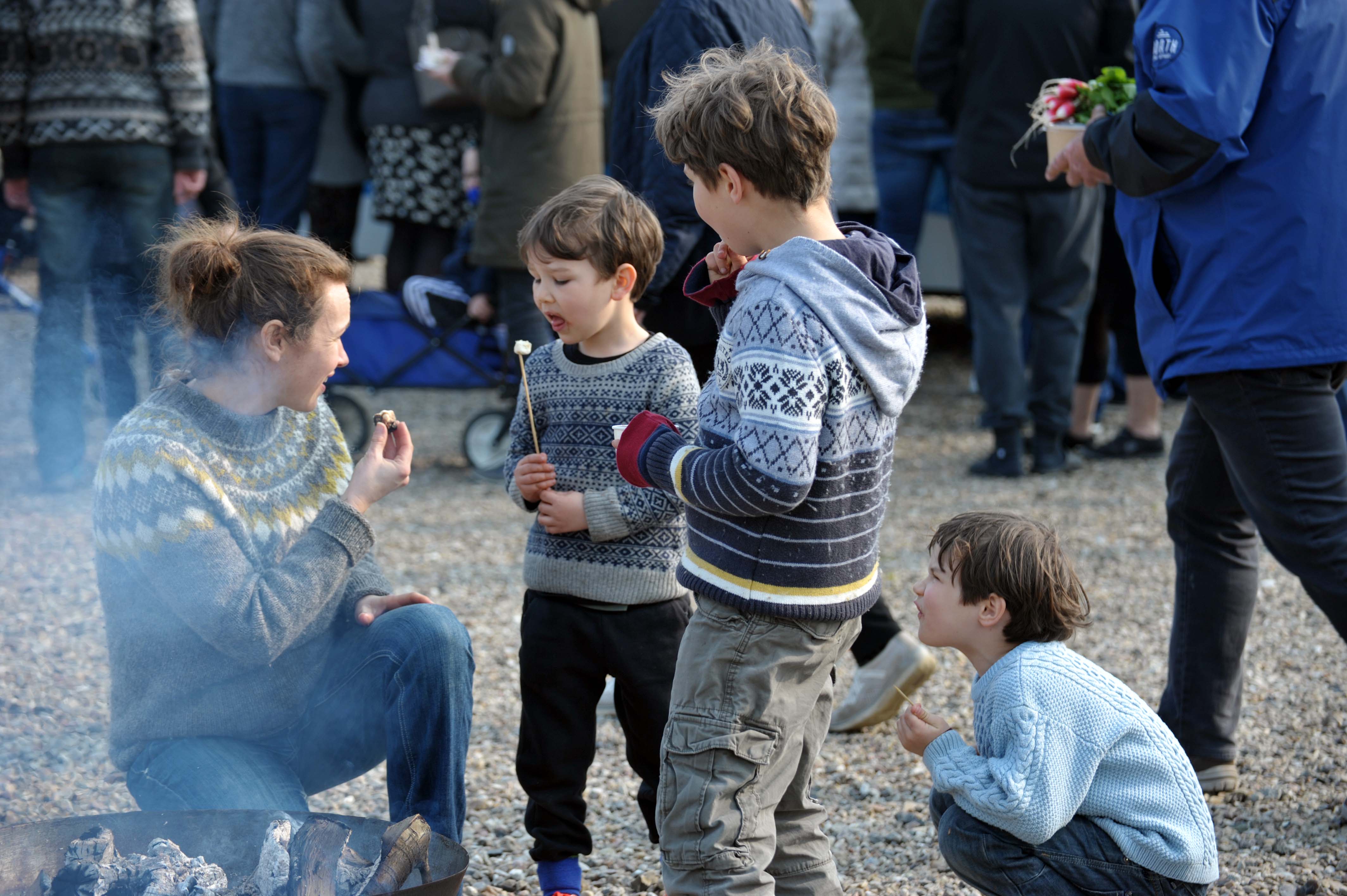 Marie startede med at foretage en præsentation af alle de forskellige boder – og mange af gæsterne nød varmen fra forårssolen, mens de smagte på ost og is, hjalp børnene med hjemmelavede skumfiduser ved bålet samt fylde indkøbstasken med friske lækre grøntsager.