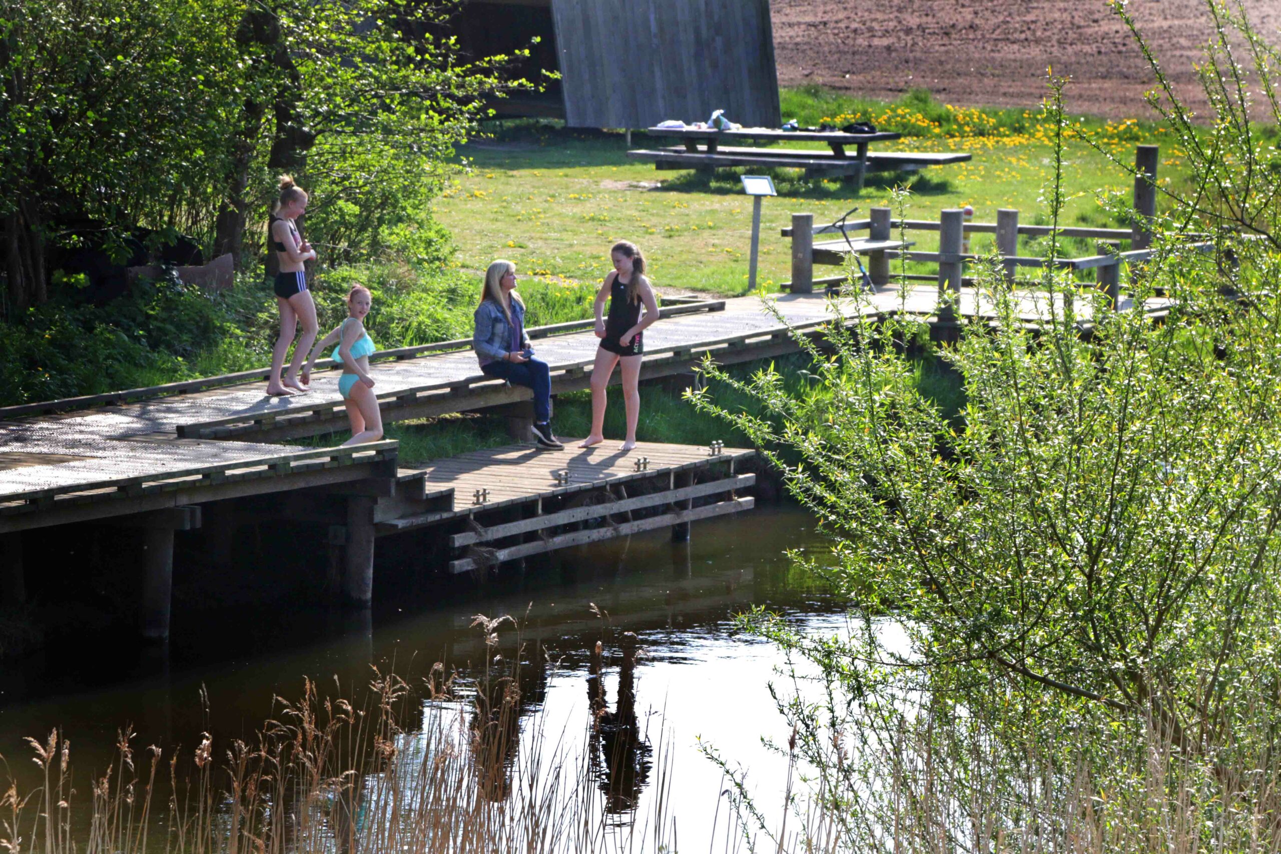 Der finder man en misligholdt bræddehytte – et slags legehus samt resterne af en badebro, men det bliver ikke muligt at genetablere de to ting på stedet. – Jeg fik oplyst, at bræddehytten simpelthen står for tæt på Kongeåen uden officiel byggetilladelse, samt at badebroen har ændret åens forløb, så der er dannet et moseagtigt naturmiljø af årtiers aflejringer. – Åen er nemlig et særligt beskyttet miljø, hvorfor en ansøgning efter al sandsynlighed vil resultere i et afslag. Resterne af den gamle bro må dog gerne fjernes.