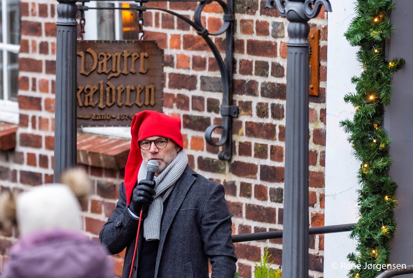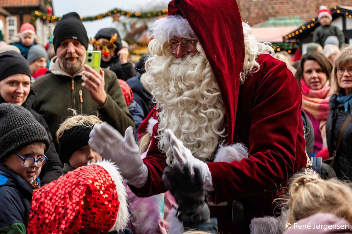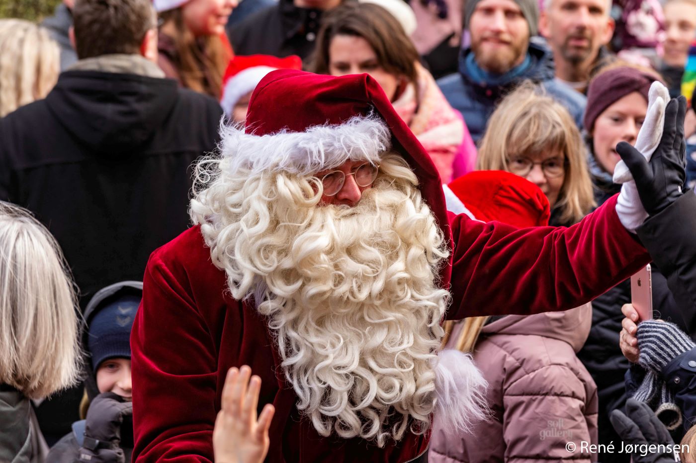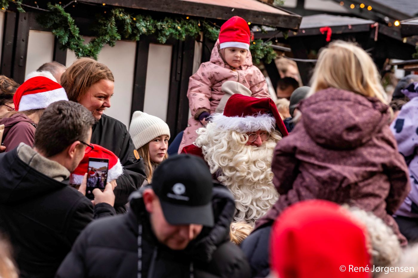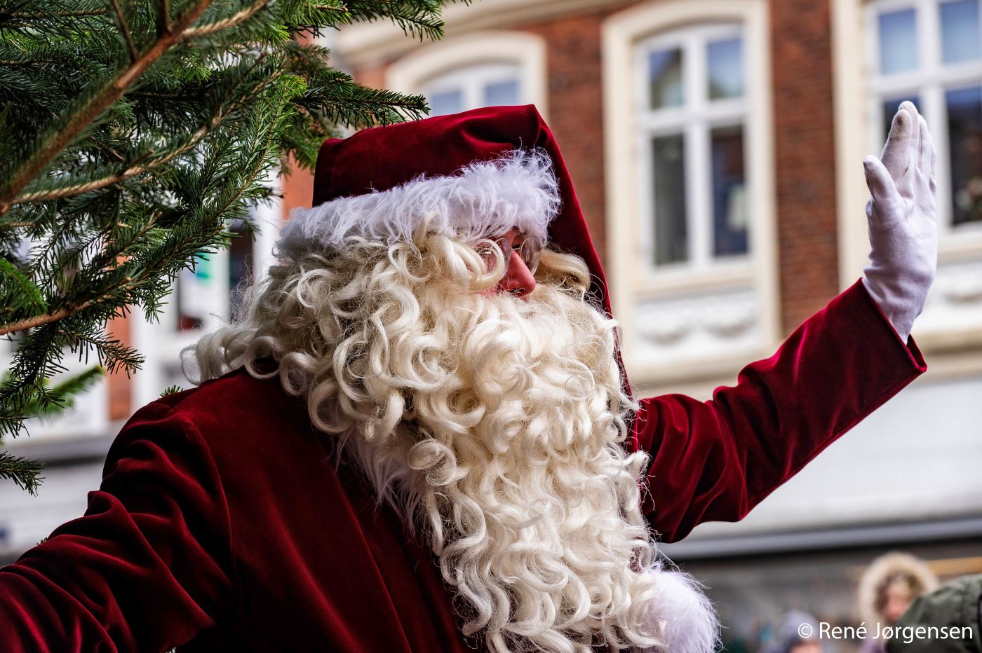 Præcis kl. 10.00 fik vi svaret. Efter at de mange børn på det stopfyldte torv havde råbt så højt JULEMAND – JULEMAND – JULEMAND, at han endelig vågnede, stak han hovedet ud af lugen i taget og ønskede alle – men især børnene – en rigtig glædelig jul. Herefter bevægede han sig langsomt gennem folkemængden hen til det store, flotte juletræ, og med en fælles nedtælling fra ti til tænd, kom der lys i det kæmpestore træ på torvet.