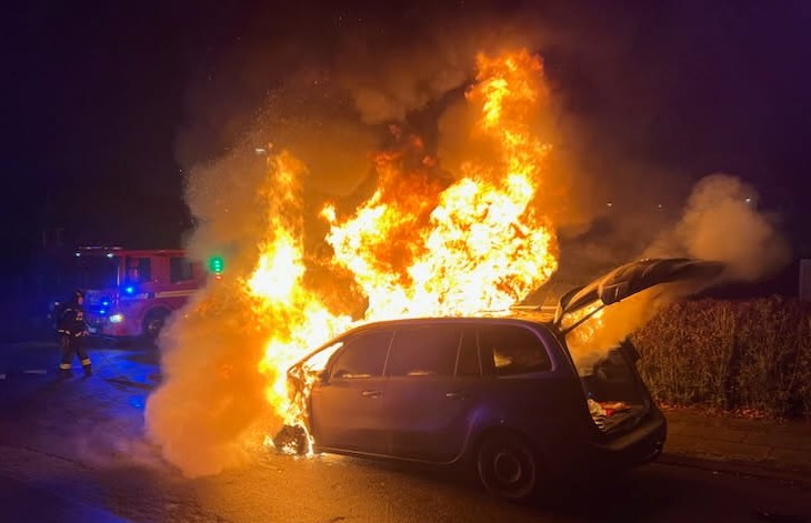Bilisten havde netop sat passagerer af ved Obbekærparken, da vedkommende lugtede røg i bilen, og umiddelbart efter brød flammerne ud.