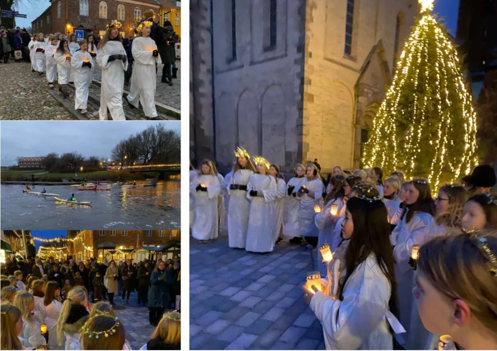 På luciadag gik de to kor syngende gennem gaderne for at møde kajakroere fra Ribe Roklub ved Skibbroen. De oplyste kajakker var et flot syn på den brusende å, ligesom pigerne i deres hvide dragter og med levende lys var det i gaderne. Deres smukke sang om Sct. Lucia, der bærer lyset ind, betog de adskillige hundrede mennesker, der var mødt op denne kolde vinterdag.