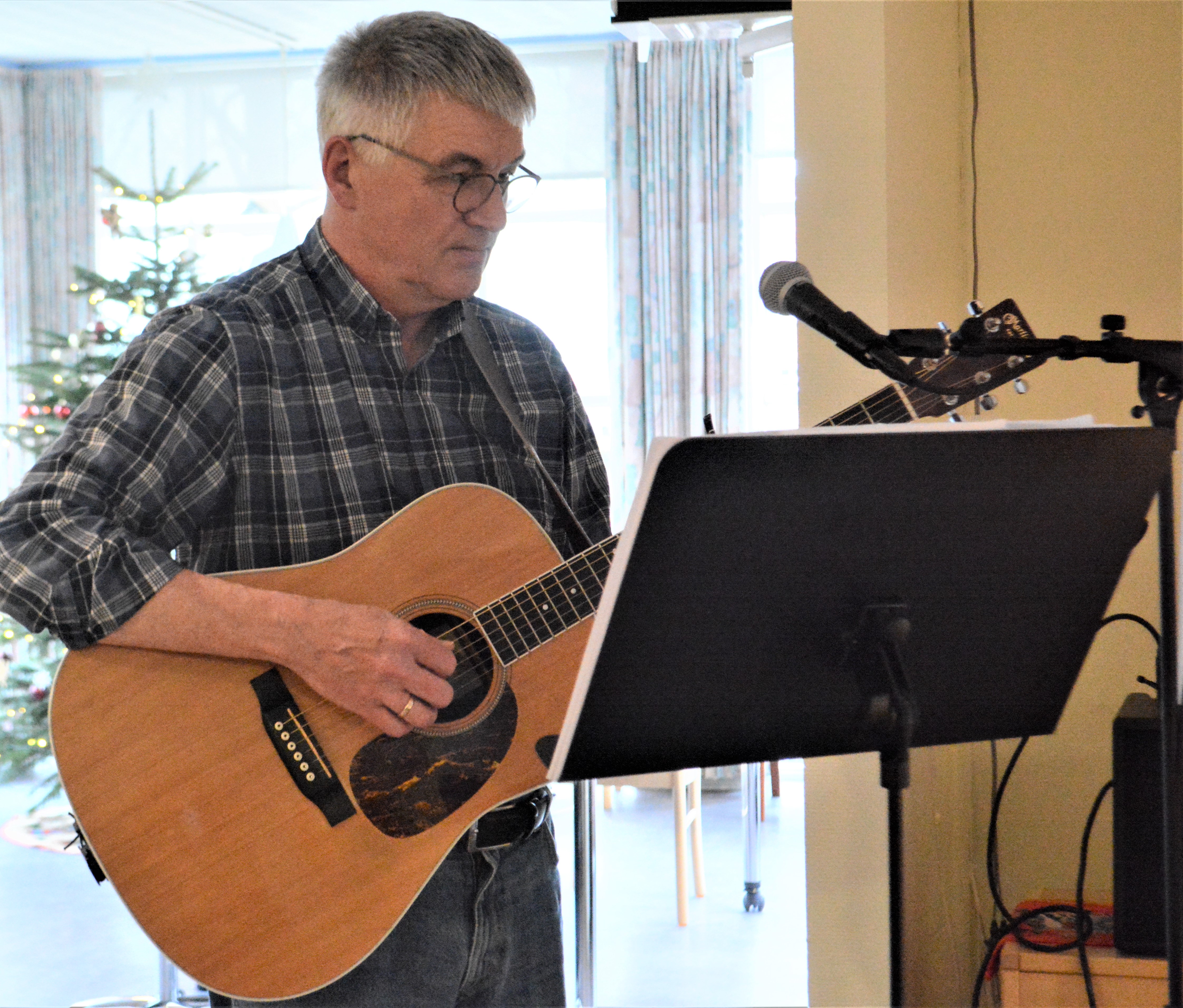 Imens spillede Søren Olsen nogle af julens dejlige sange. Søren Olsen er amatørmusiker og har boet i Ribe i fem år. Han kom fra Espergærde.