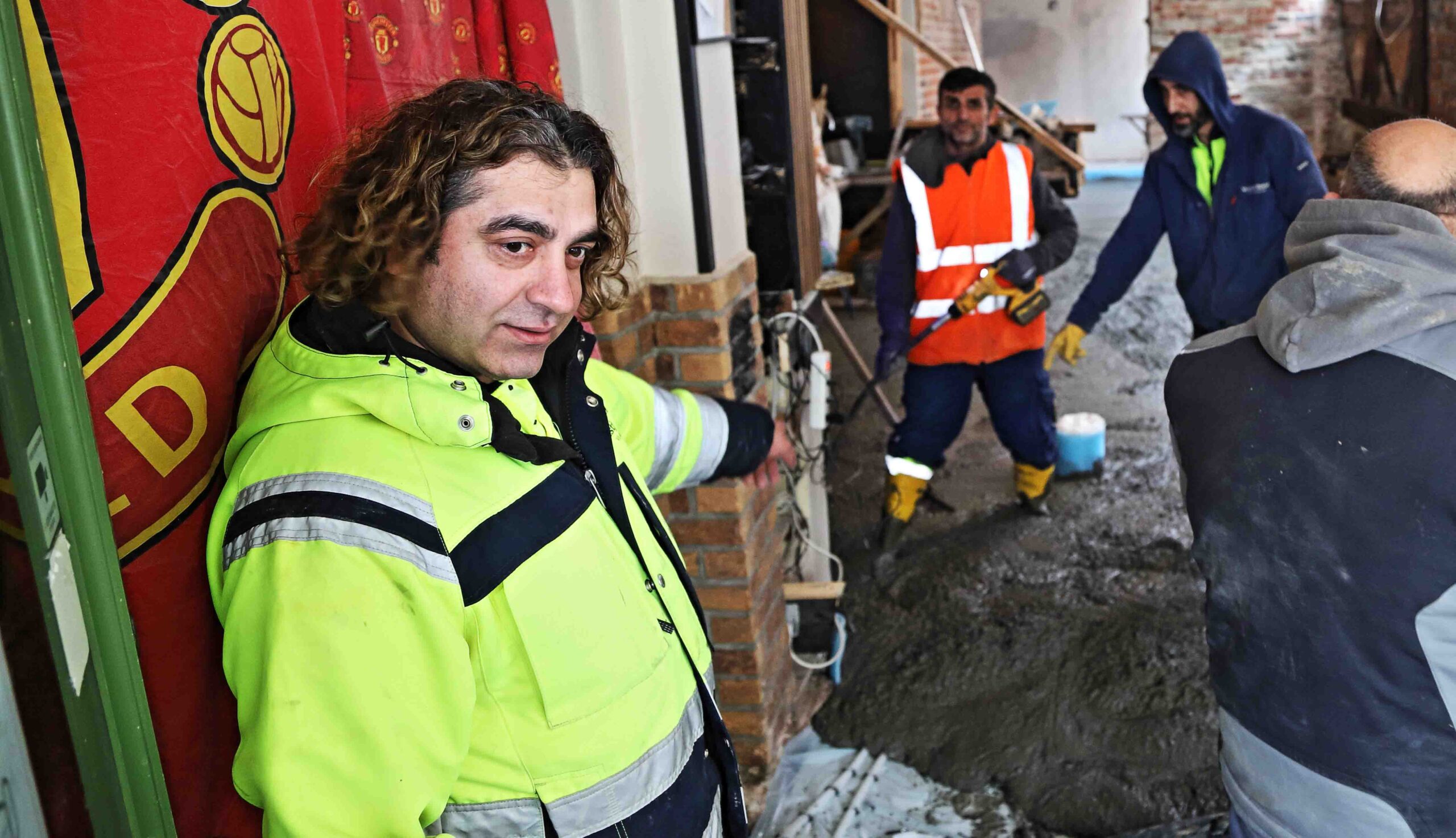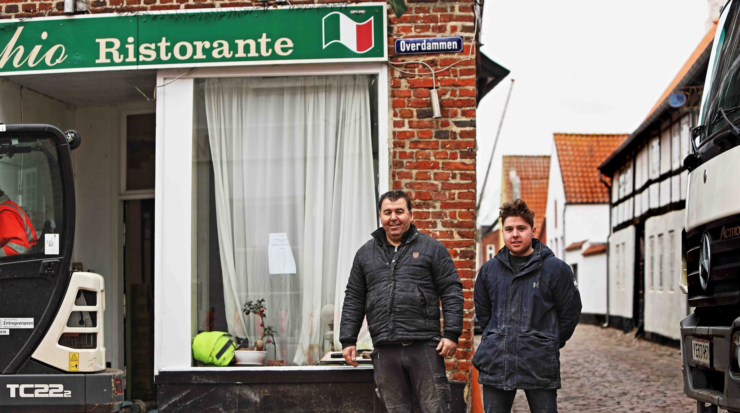 Udenfor fangede RYK IND RIBE ejeren Kerem Dash, som fulgte leveringen af den store mængde gulvcement i en snak med Esbjerg Kommunes folk, som var i færd med at grave ud til den nye belægning med granitfliser.