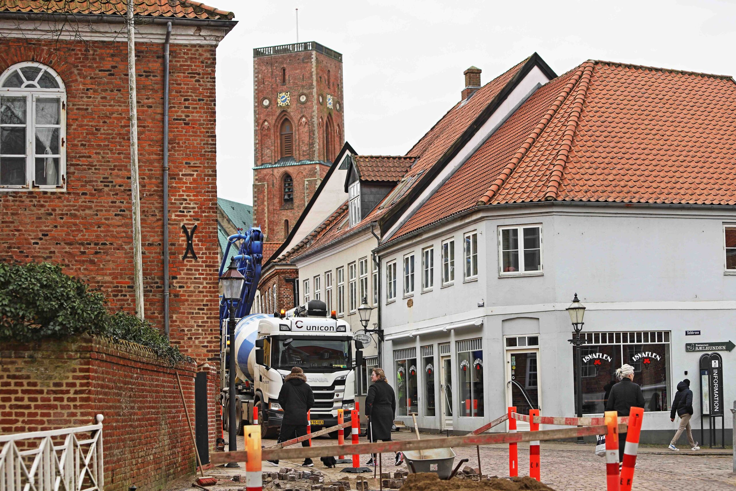 Hold da op, tænkte mange i gågaden onsdag ved 13.45-tiden, da de mødte to store cementvogne ud for Fiskergade.