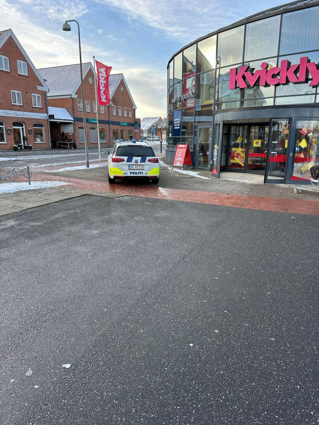 Årvågent personale i Kvickly i Ribe reagerede fredag hurtigt, da de blev opmærksomme på personer, som forsøgte at forlade varehuset gennem en sidedør med en fyldt indkøbsvogn. Personalet tilkaldte straks politiet, som rykkede ud fra Esbjerg med fuld udrykning i håb om at kunne standse og pågribe de formodede gerningsmænd.
