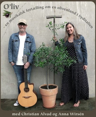 Allerede tirsdag den 19. november klokken 19 kan du på Café Quedens komme med på et olieeventyr i Syditalien. Det er Christian Ahlvad og Anna Wirsén, der giver en musikalsk beretning om det at blive ejer af 1,4 hektar olivenlund med medfølgende ruin.