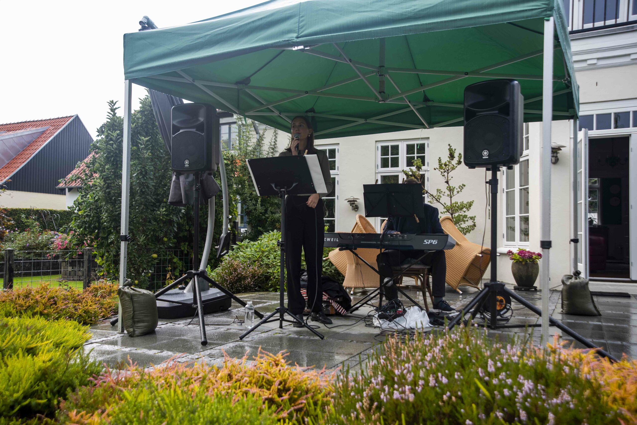 – Vi er rigtig glade for, at Den lille Vinklub har booket os for anden gang – og dermed givet os mulighed for at deltage i vinfesten. Det er jo noget helt særligt at spille på byens flotteste scene i Lene og Palle Adelhardts smukke have, lød det fra Isabella Maimburg, der sammen med far Bo skabte god underholdning.