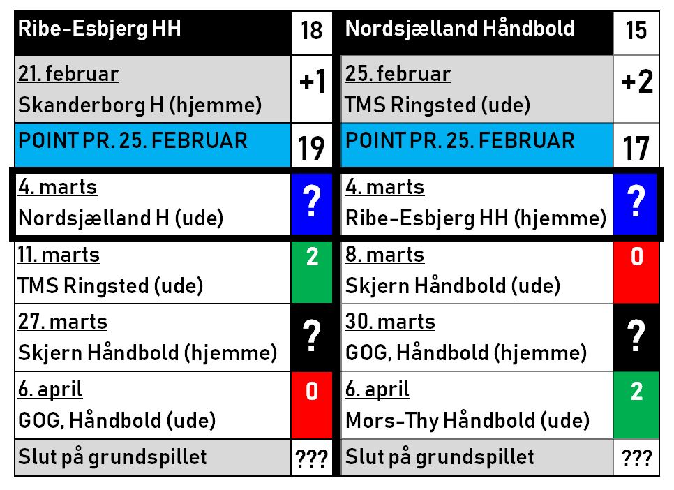 Mandag aften vandt Nordsjælland Håndbold lokalopgøret på udebane mod TMS Ringsted med (24-27) efter stillingen (11-14) ved pausen. Det betyder, at Nordsjælland Håndbold kan komme på samme point tal som REHH, når de mødes 4. marts kl 19:30.