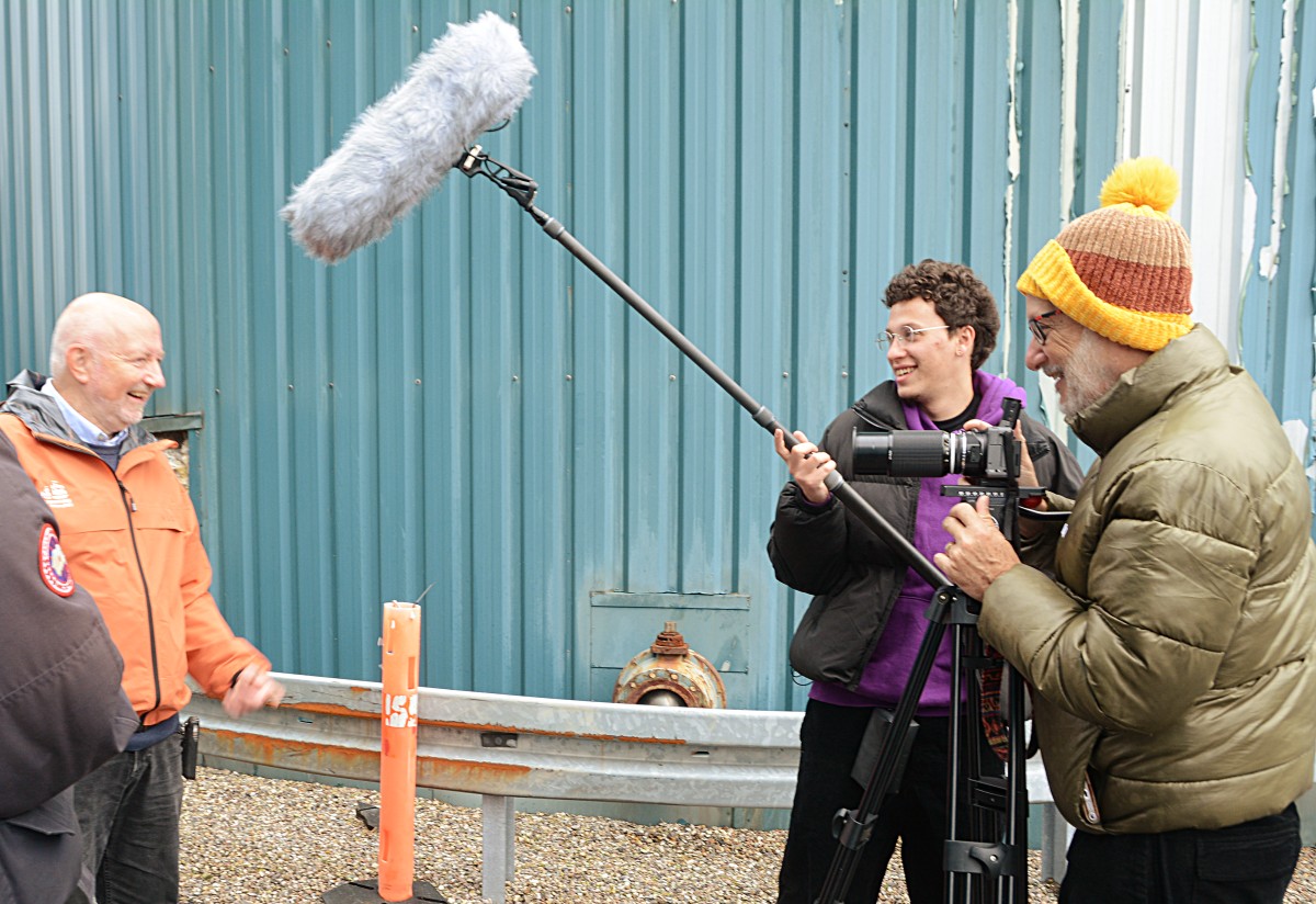 Filmoptagelser og interviews tog en hel dag. T.v. tolken Luca Wolfgang, der bor i Berlin. Sérgio og Leon taler kun portugisisk, så en tolk var nødvendig.