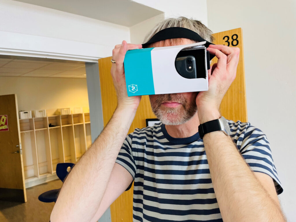 Men heldigvis er der tale om en teknologiskabt, alternativ virkelighed, som eleverne vil opleve ved brug af smartphones og simple virtual reality-briller.