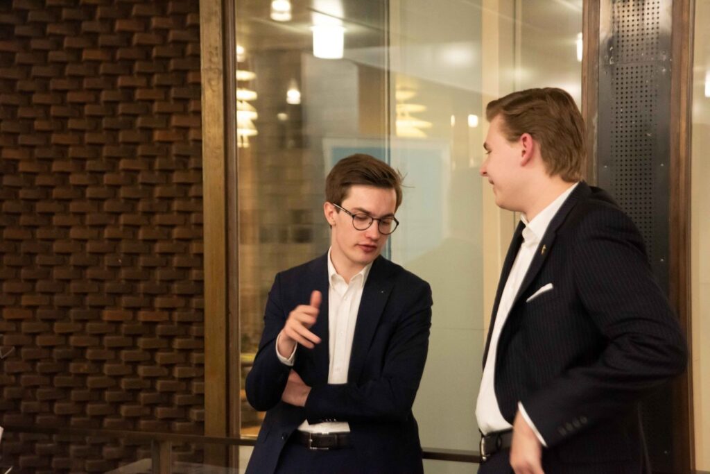 De to unge løver, Emil Pedersen (t.v.) og Alexander Vasylyera fik en snak. Emil kom ind mens Alexander fik et pænt valgt med 209 personlige stemmer, der dog ikke rakte til en plads i byrådet. Han har tidligere sagt til Ryk Ind, at han ikke er færdig med politik.