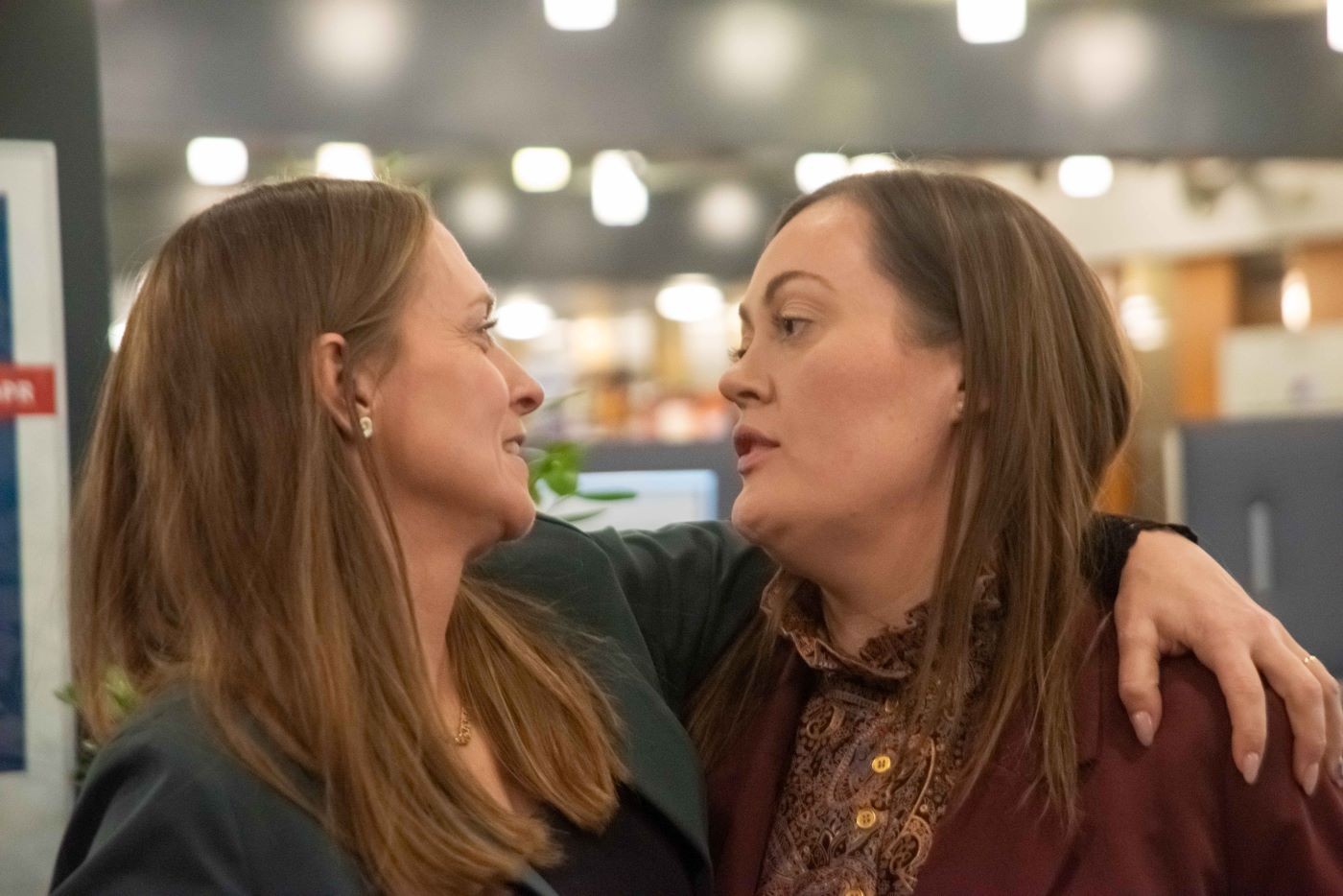 De to unge løver, Emil Pedersen (t.v.) og Alexander Vasylyera fik en snak. Emil kom ind mens Alexander fik et pænt valgt med 209 personlige stemmer, der dog ikke rakte til en plads i byrådet. Han har tidligere sagt til Ryk Ind, at han ikke er færdig med politik.