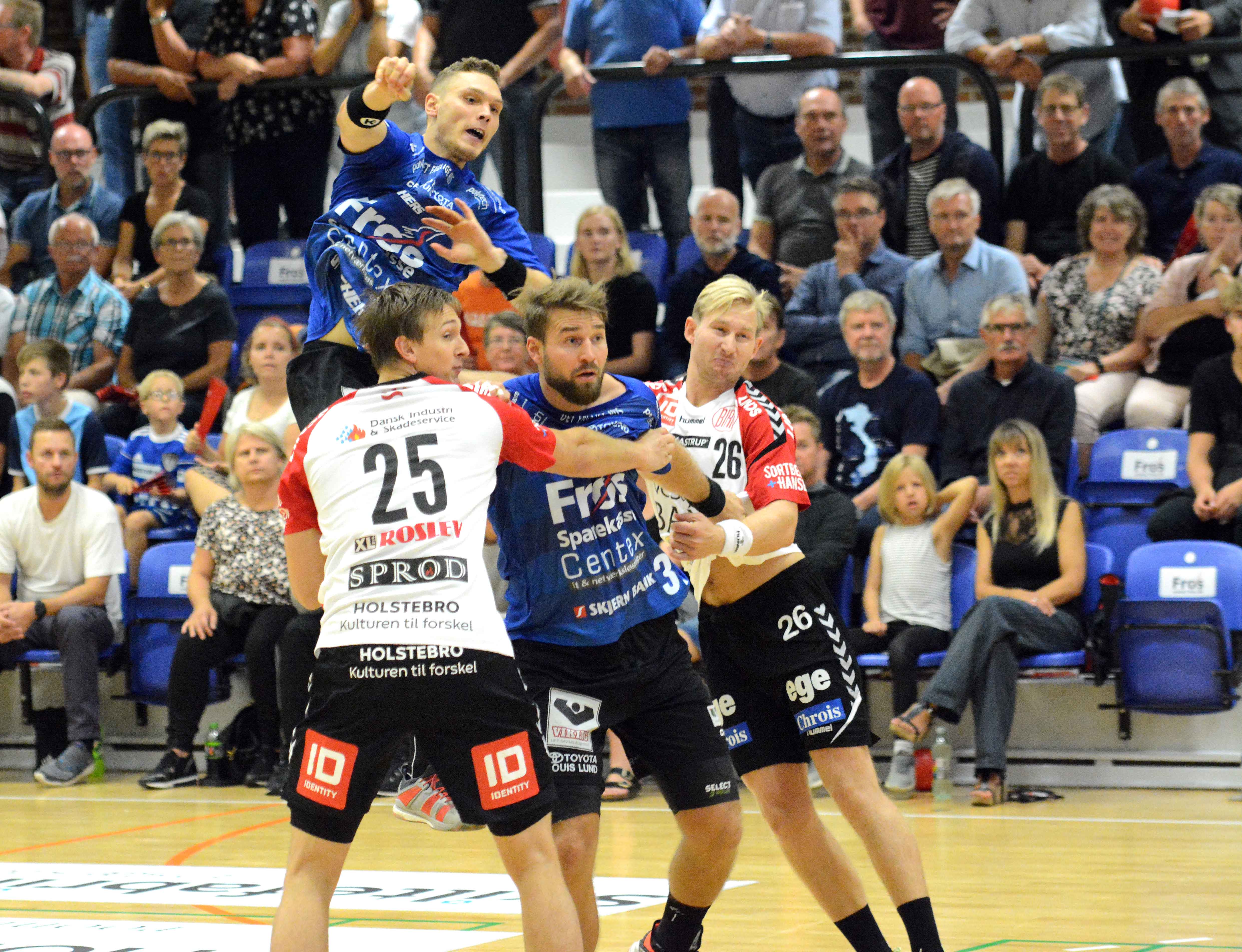 TTH’s to målmænd, Simon Gade og den tidligere REHH-spiller Sebastian Frandsen tog rigtig godt fra i mål, og både forsvaret og angrebet gjorde et rigtig svært for hjemmeholdet. Ikke mindst kontraerne voldte i sidste del af kampen REHH problemer.