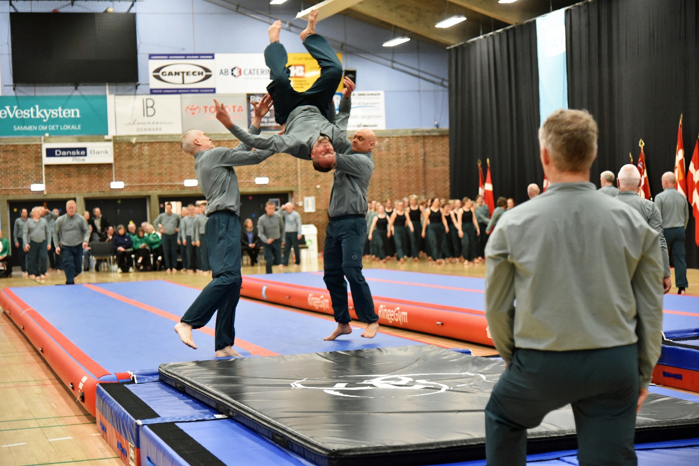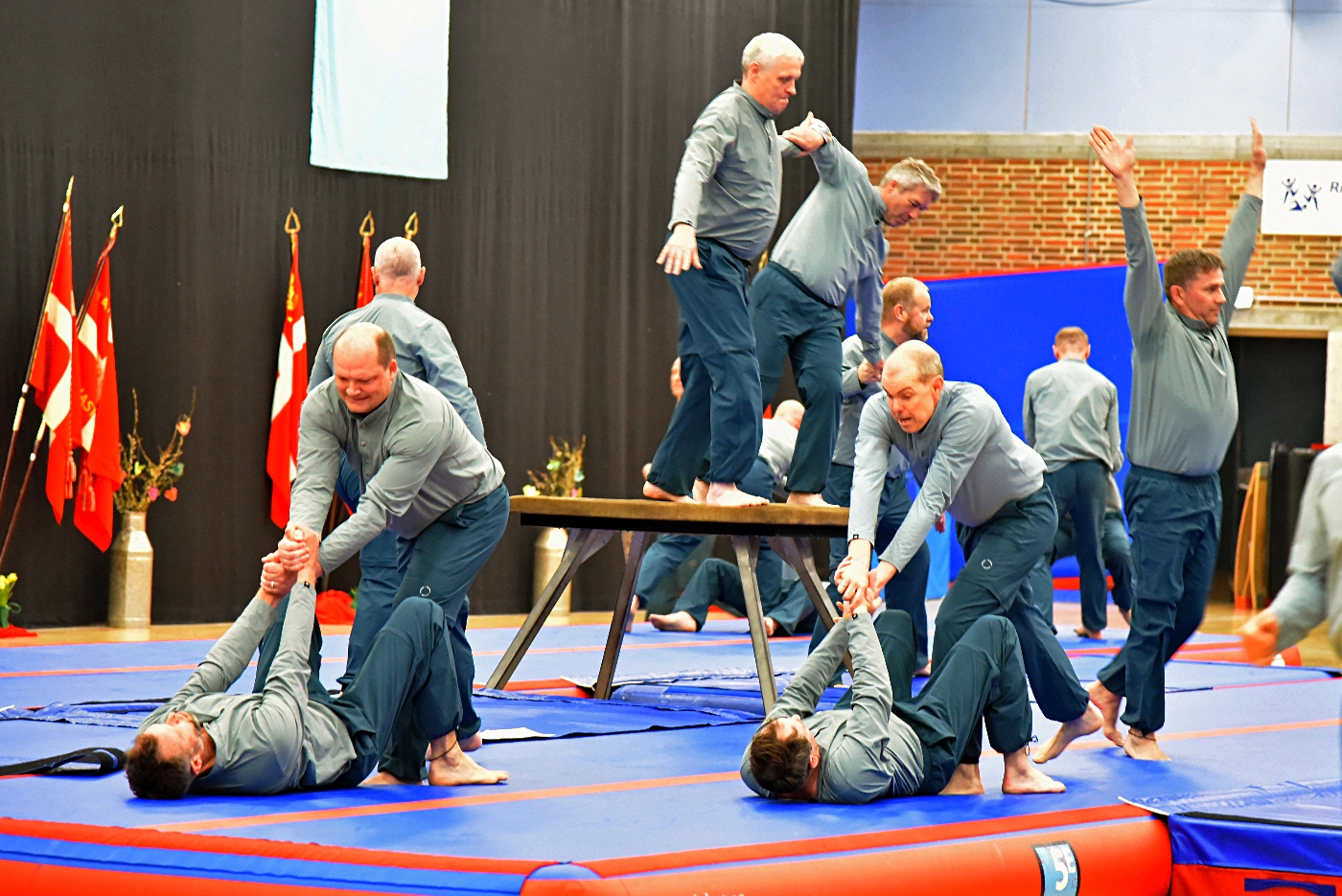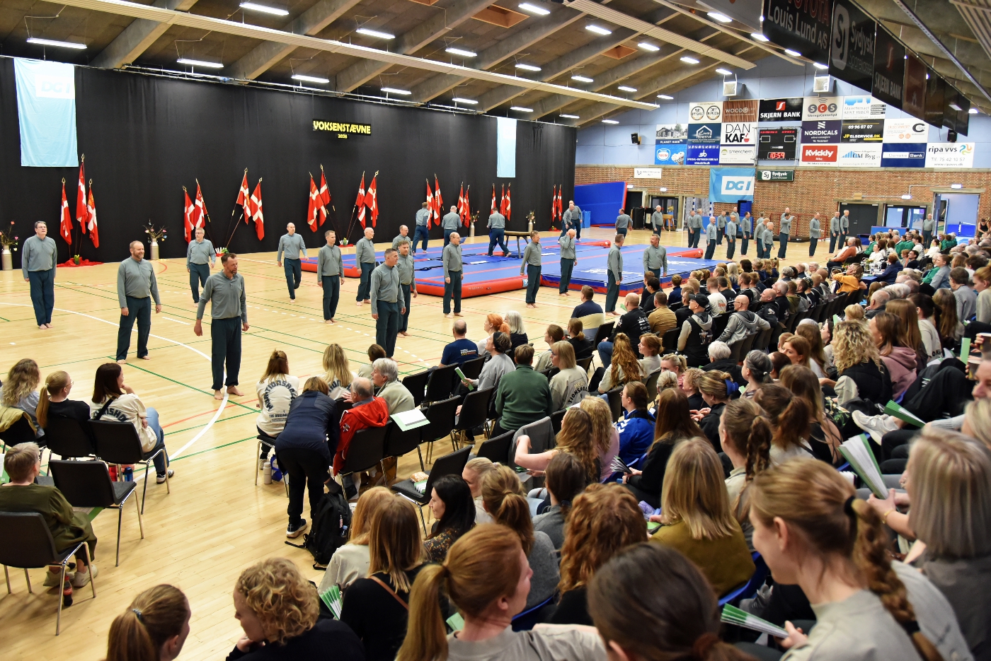 Lørdag stod i breddens og mangfoldighedens tegn. Fra morgenstunden og langt ind i eftermiddagen var der konstant aktivitet på gulvet, hvor kvindehold, mixhold, motionshold og mere erfarne opvisningshold skiftedes til at vise deres programmer. Den fyldte hal emmede af begejstring, og man fik et fint indblik i gymnastikkens mange udtryk og høje niveauer.