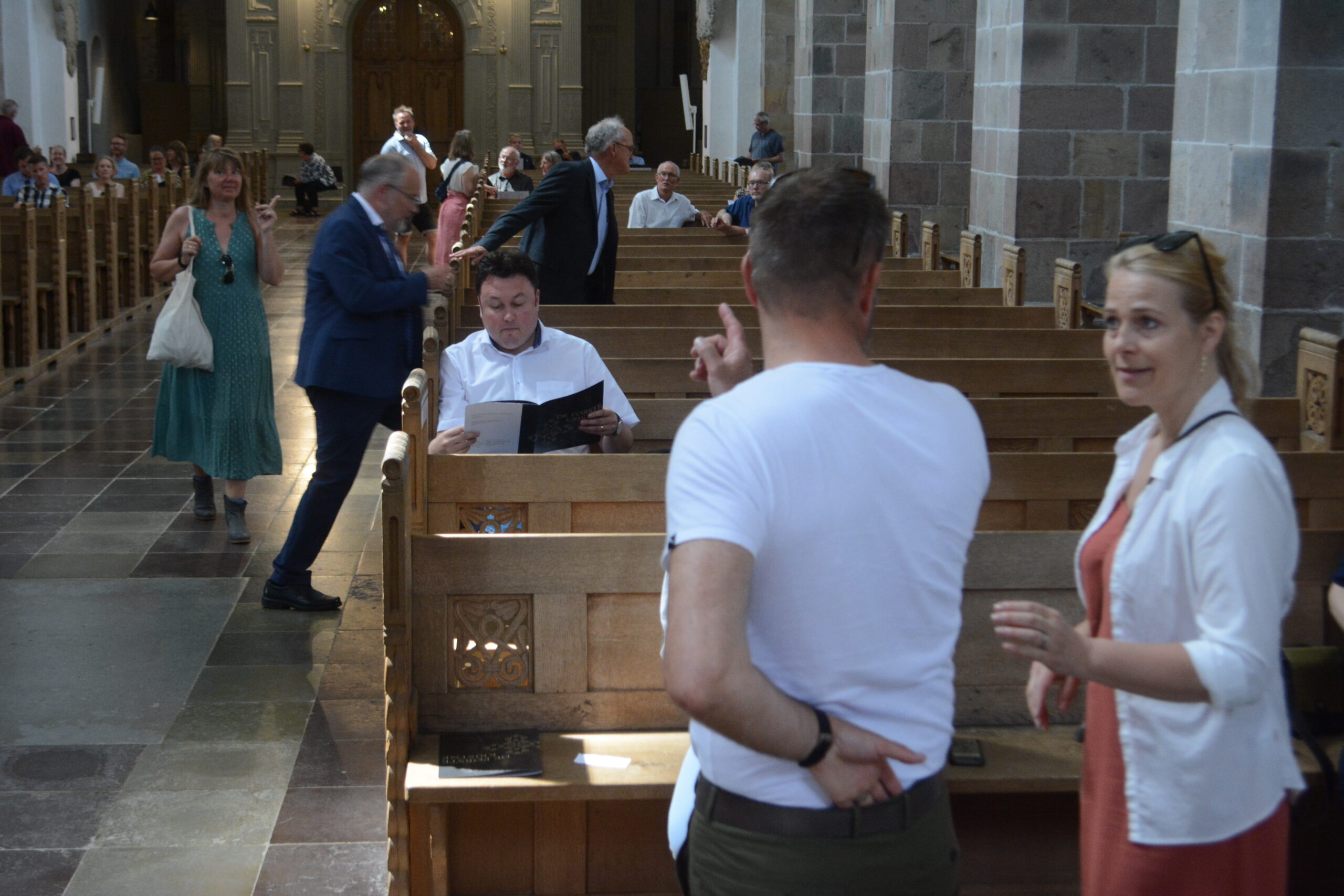 Museumsinspektør Mette Slyngborg har været projektleder på indretningen af museet, mens overinspektør Morten Søvsø har haft ansvaret for arkæologien, og det var spændende beretninger, de to kunne give i domkirken om hele projektet, hvor formanden for museumsfonden og menighedsrådet, Tage Rosenstand, bød velkommen og fortalte om hele historikken.