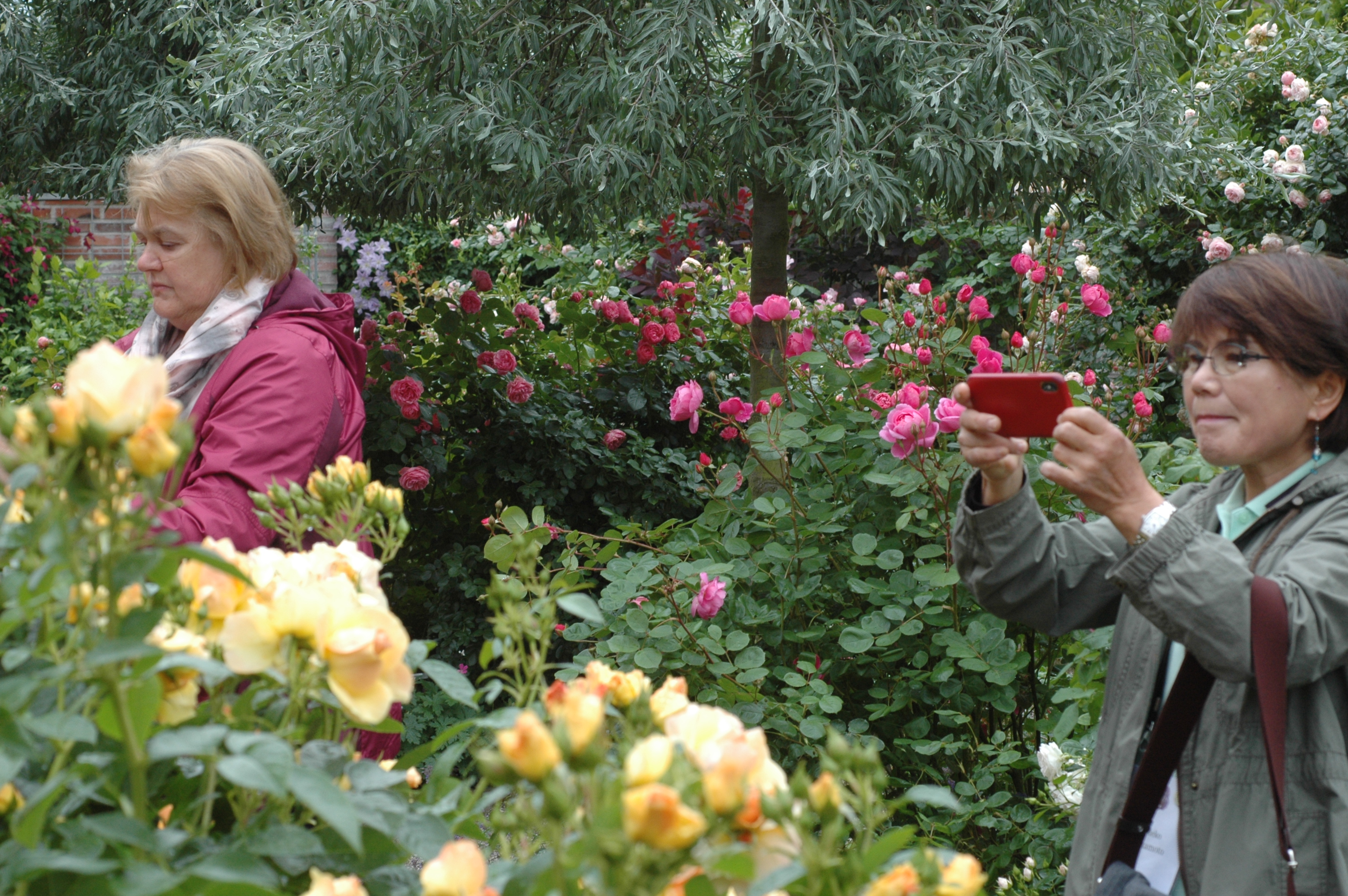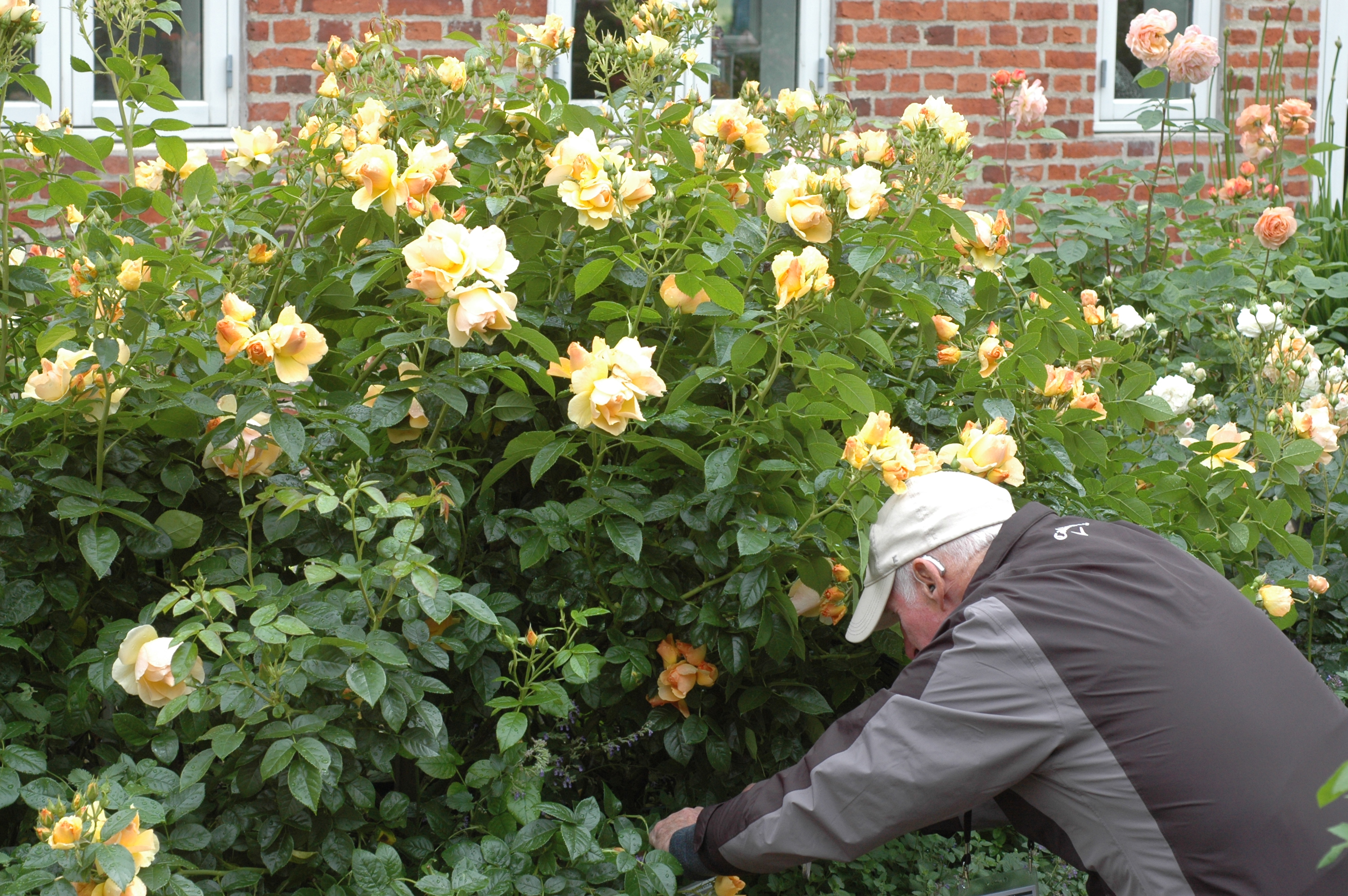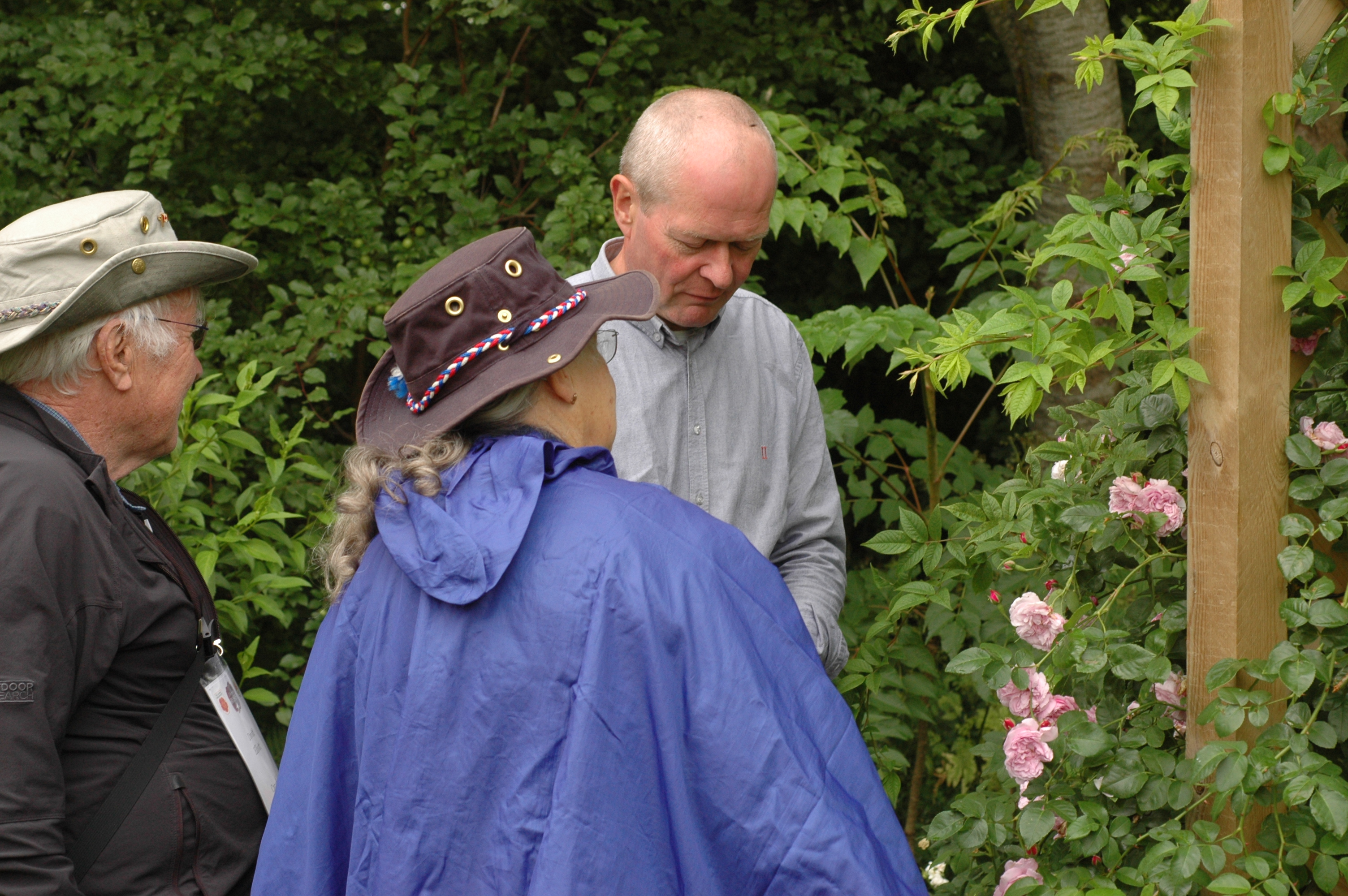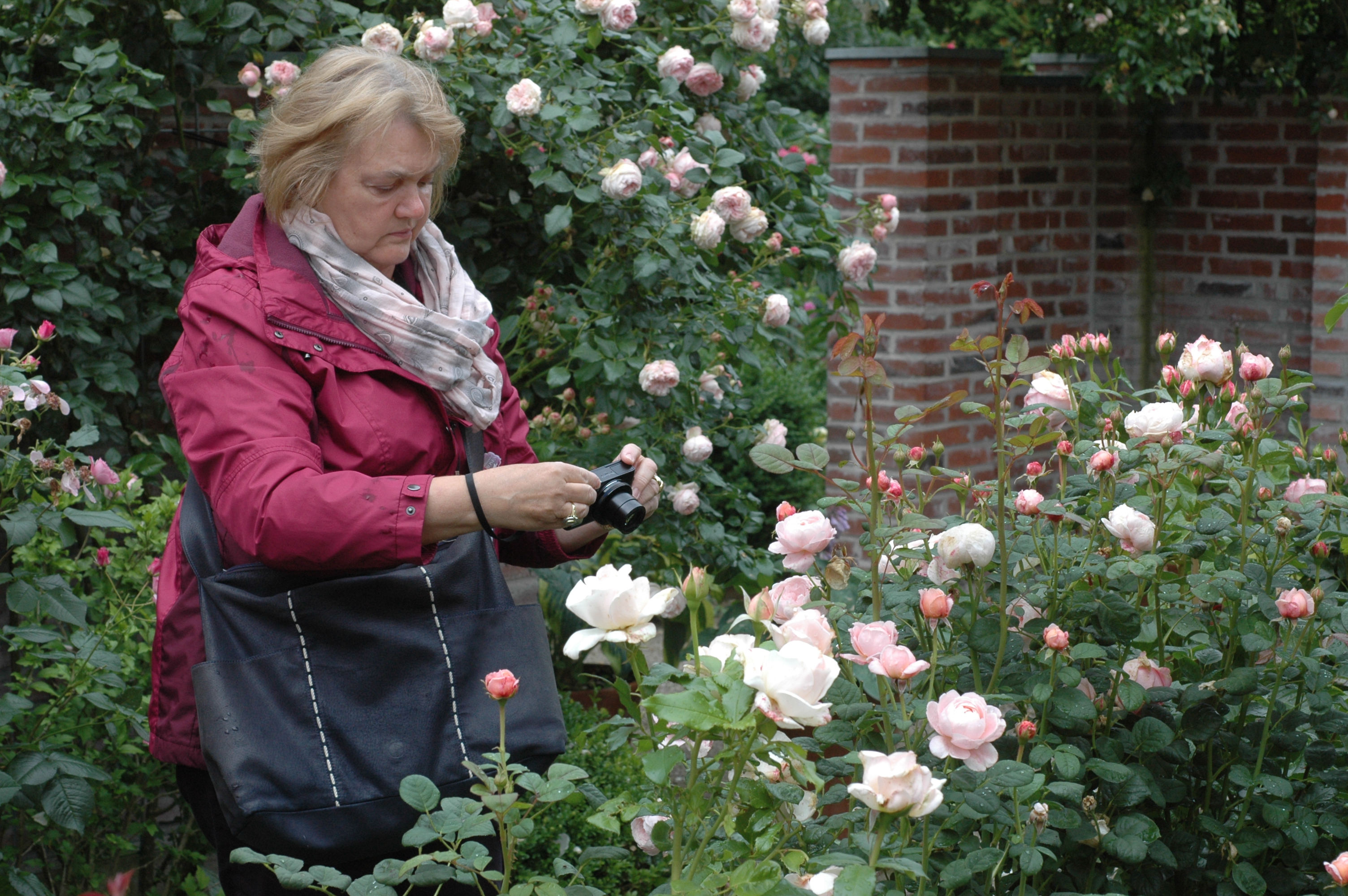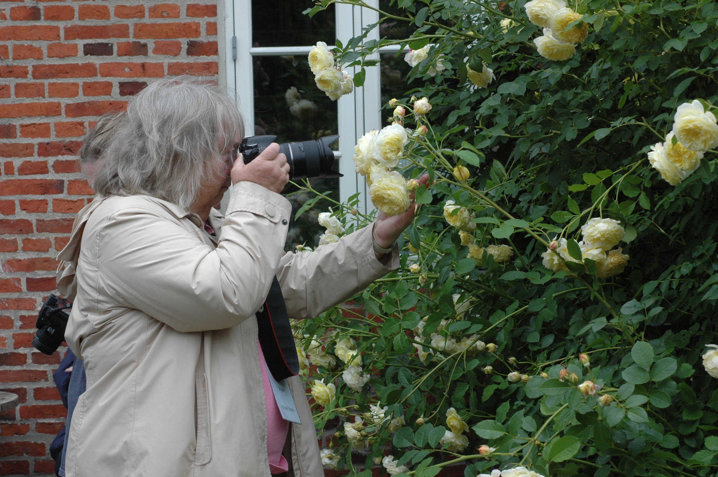 Og da gæsterne denne søndag var på besøg, blev roserne for alvor vurderet og beundret ligesom der blev taget fotos i lange baner.