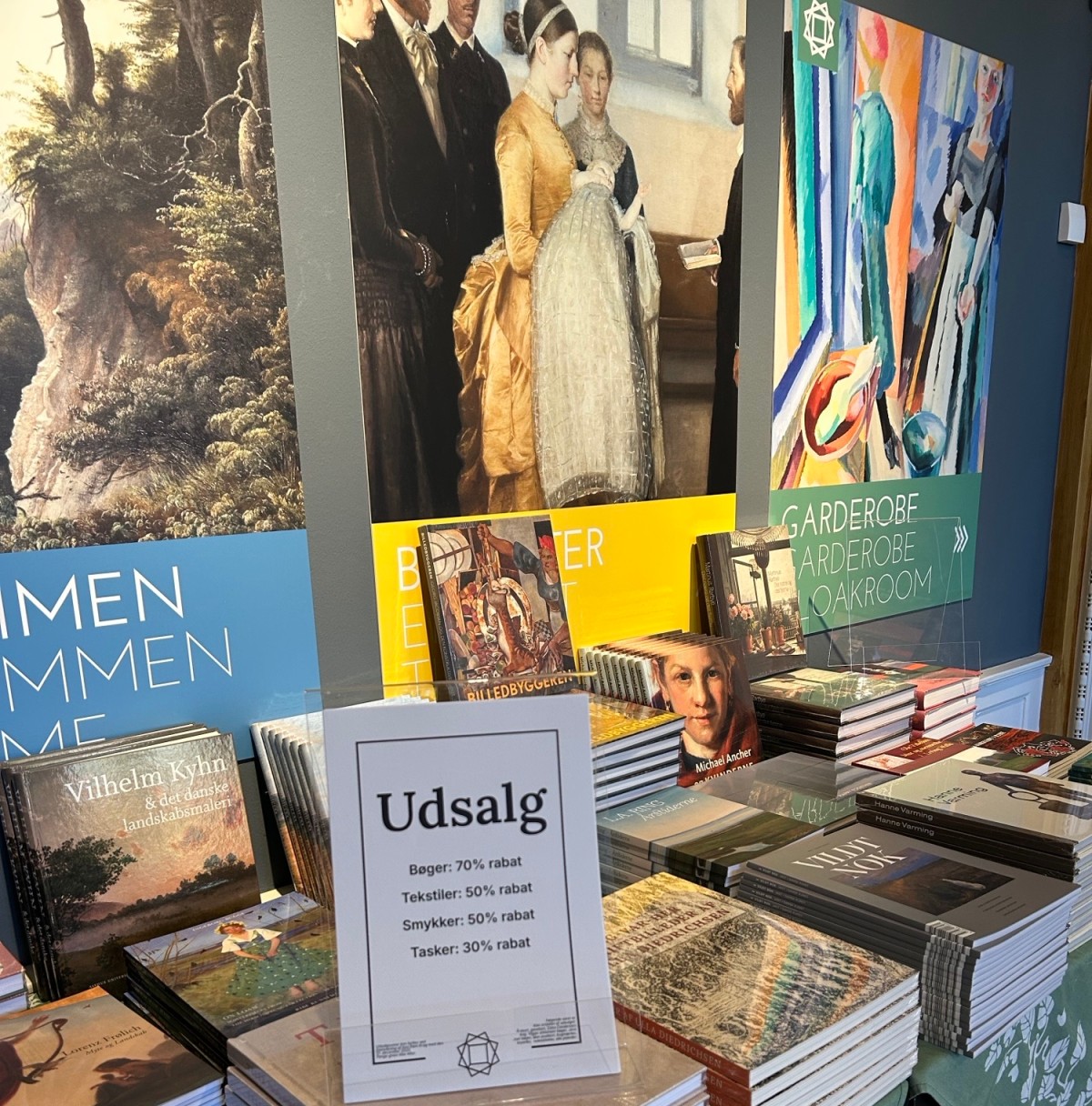 Nej, der hvor udsalget finder sted, er i museumsbutikken, for her skal der gøres plads til nye varer på hylderne, og derfor sælges stort set alle varerne med et nedslag i prisen fra 30 til 70 procent. Det gælder kunstbøger, smykker, tekstiler, tasker, spil og meget mere.
