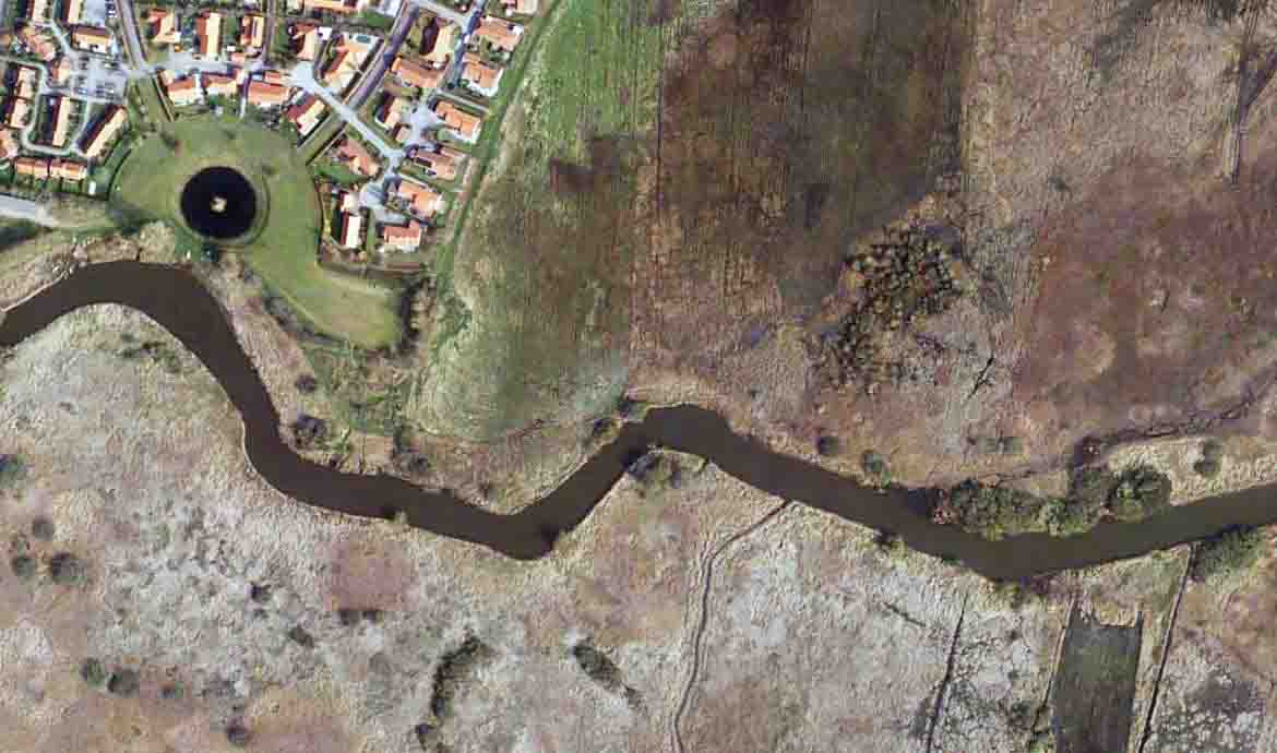 Se selv på åforløbet fra Mølledammen til Varming Bro – og bemærk de mange lige strækninger.
