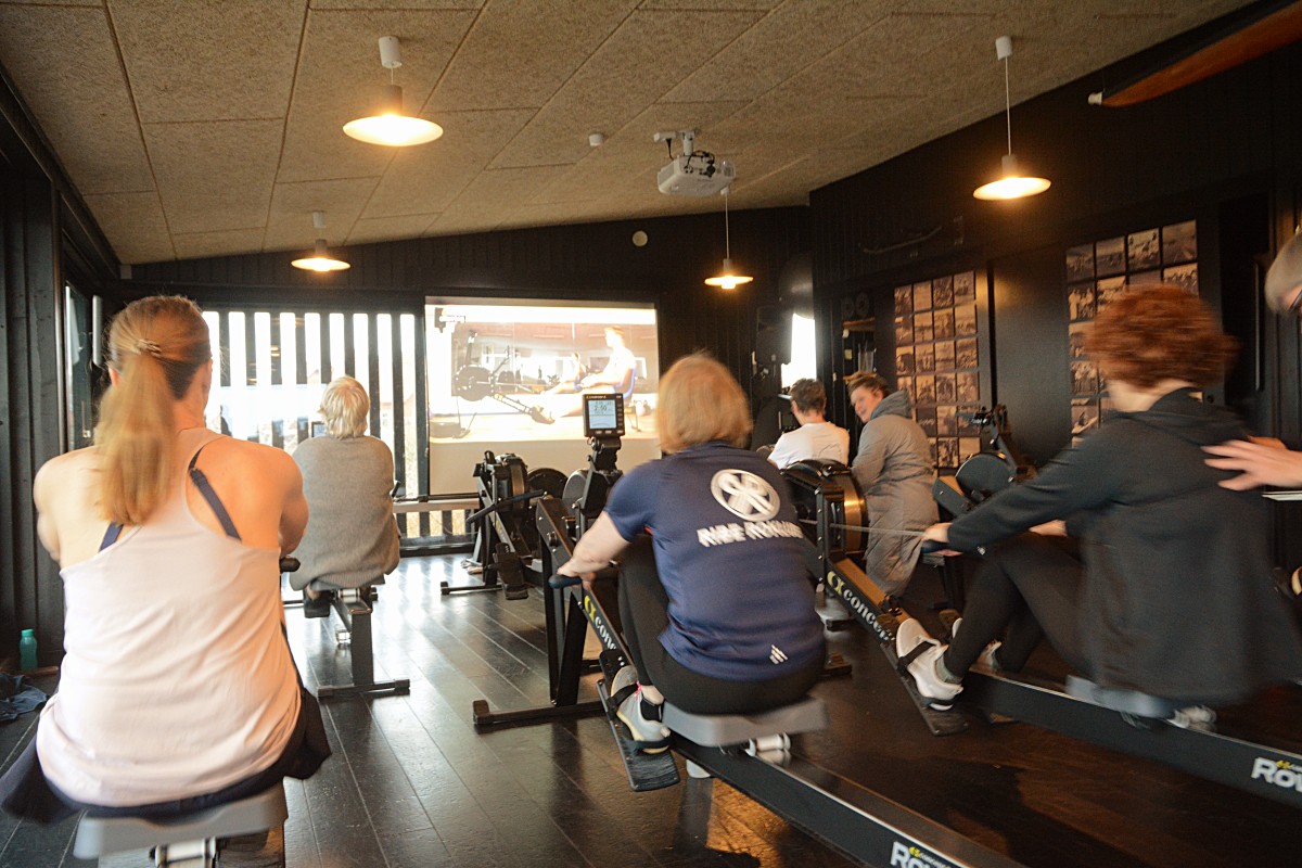 – E-roning er en fantastisk form for motion. Her rører du stort set alle kroppens muskler som skuldre, arme, ryg, mavemuskler og ben. På en storskærm følger deltagerne instruktørens anvisninger om antallet af åretag i minuttet o.s.v. Samtidig går en lokal instruktør rundt og retter, hvad der eventuelt bliver gjort forkert, fortæller Trine Ryhave.