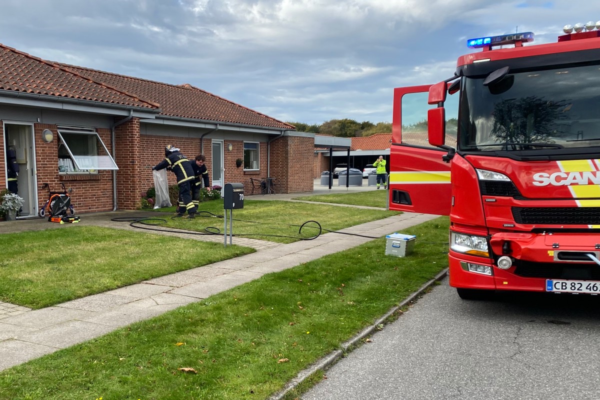 Sydvestjysk Brandvæsen fra Ribe fik hurtigt bugt med ilden, og derefter kunne brandfolkene nøjes med at ventillere køkkenet, så røgen kom ud.