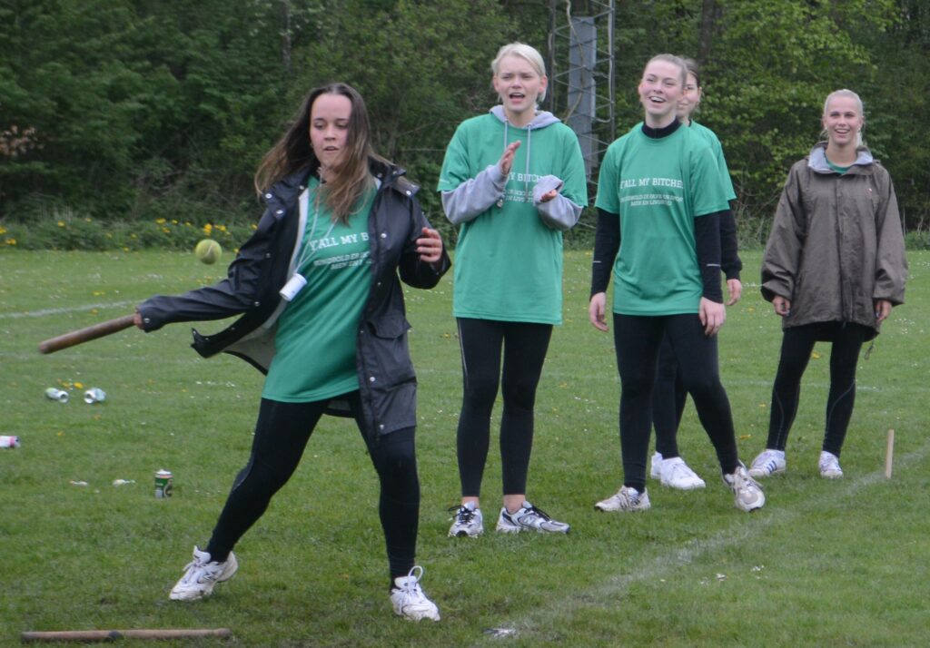 Resultatet blev, at en halv snes af pigerne blev enige om at spille en gang rundbold, og det blev de så grebet af, at de mødtes mindst en gang om ugen for at dyrke spillet. Det udviklede sig, og siden inviterede de vennegrupper med, så det nu har udviklet sig til dage med egentlige turneringer som denne fredag eftermiddag.