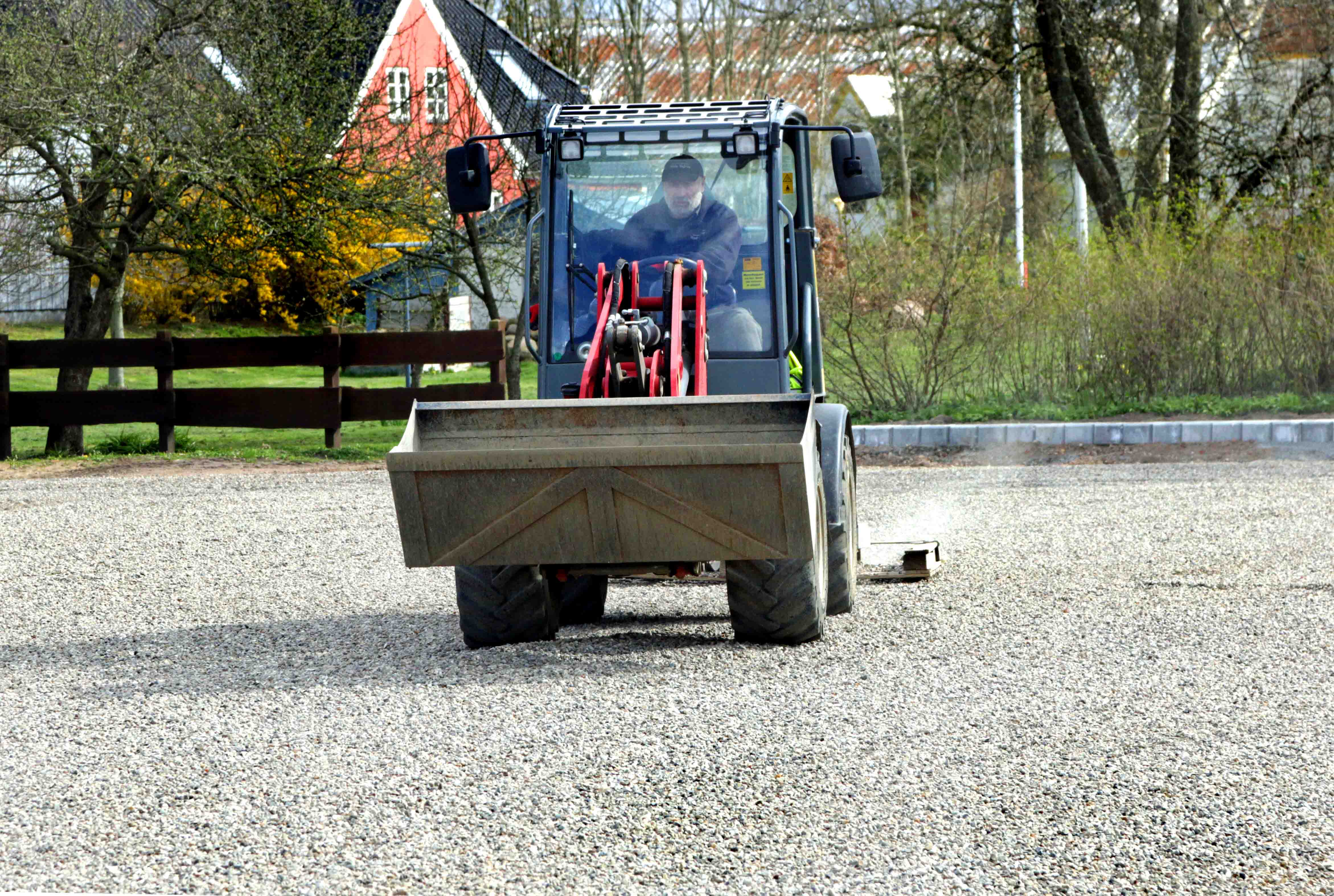 “Prikken over i´et”. Nu kan borgerne i Farup glæde sig over, at det nye mødested – Farup Fælled – har fået ny parkeringsplads. På nærmest rekordtid har entreprenøren fjernet resterne af Farup Skole – de store mængder af træ og mursten er kørt bort – og pladsen er blevet fyldt op med grus, som i denne uge er blevet planeret ved tålmodige træk.