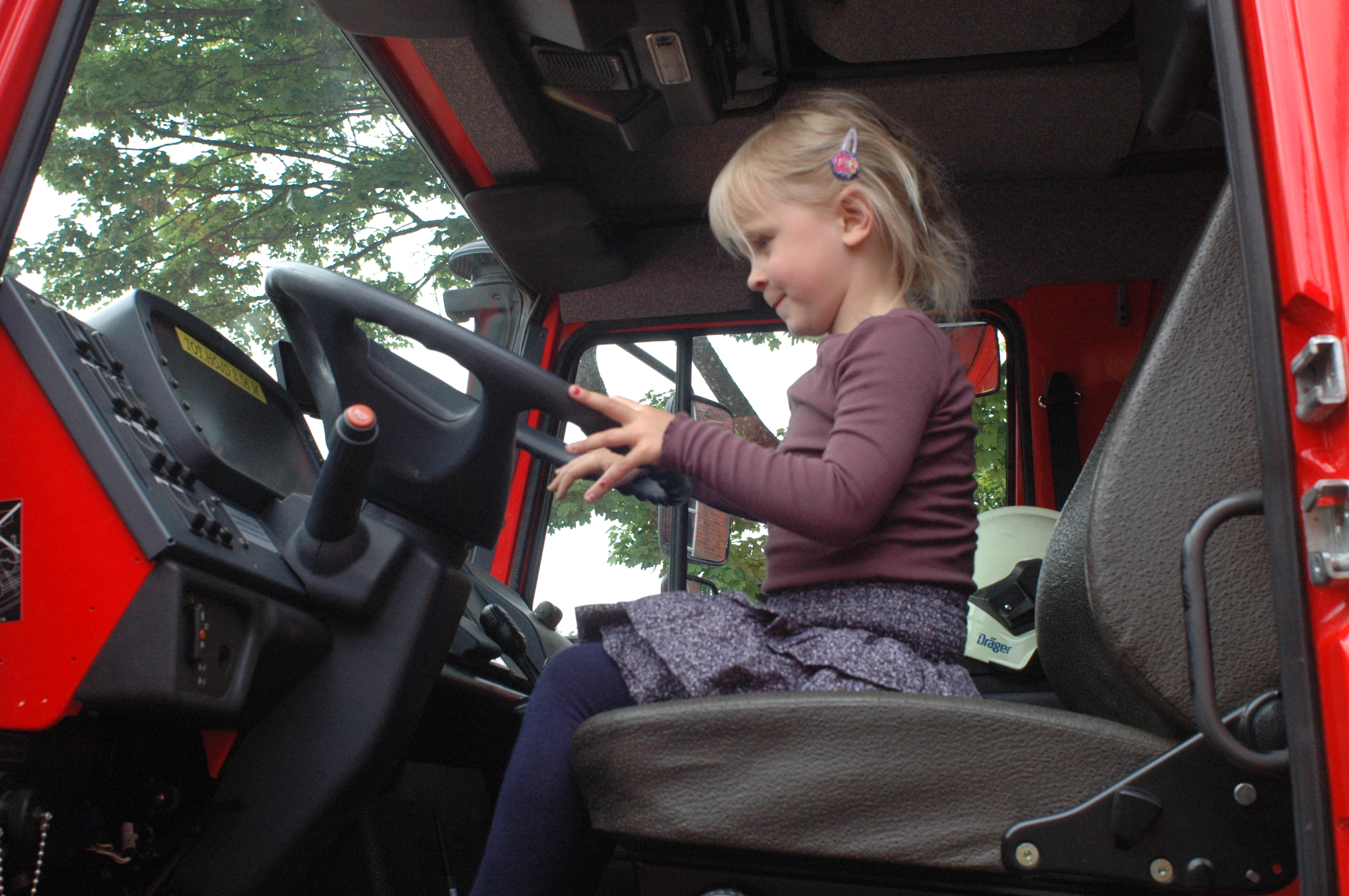 Ribe Brandmandsforening hygger om de mange gæster, der vælger at kigge ”indenfor”, og de store brandbiler må til børnenes store fornøjelse ikke alene besigtiges men også bemandes. Og så er man sej, når man sidder bag rattet højt hævet over alt og alle.