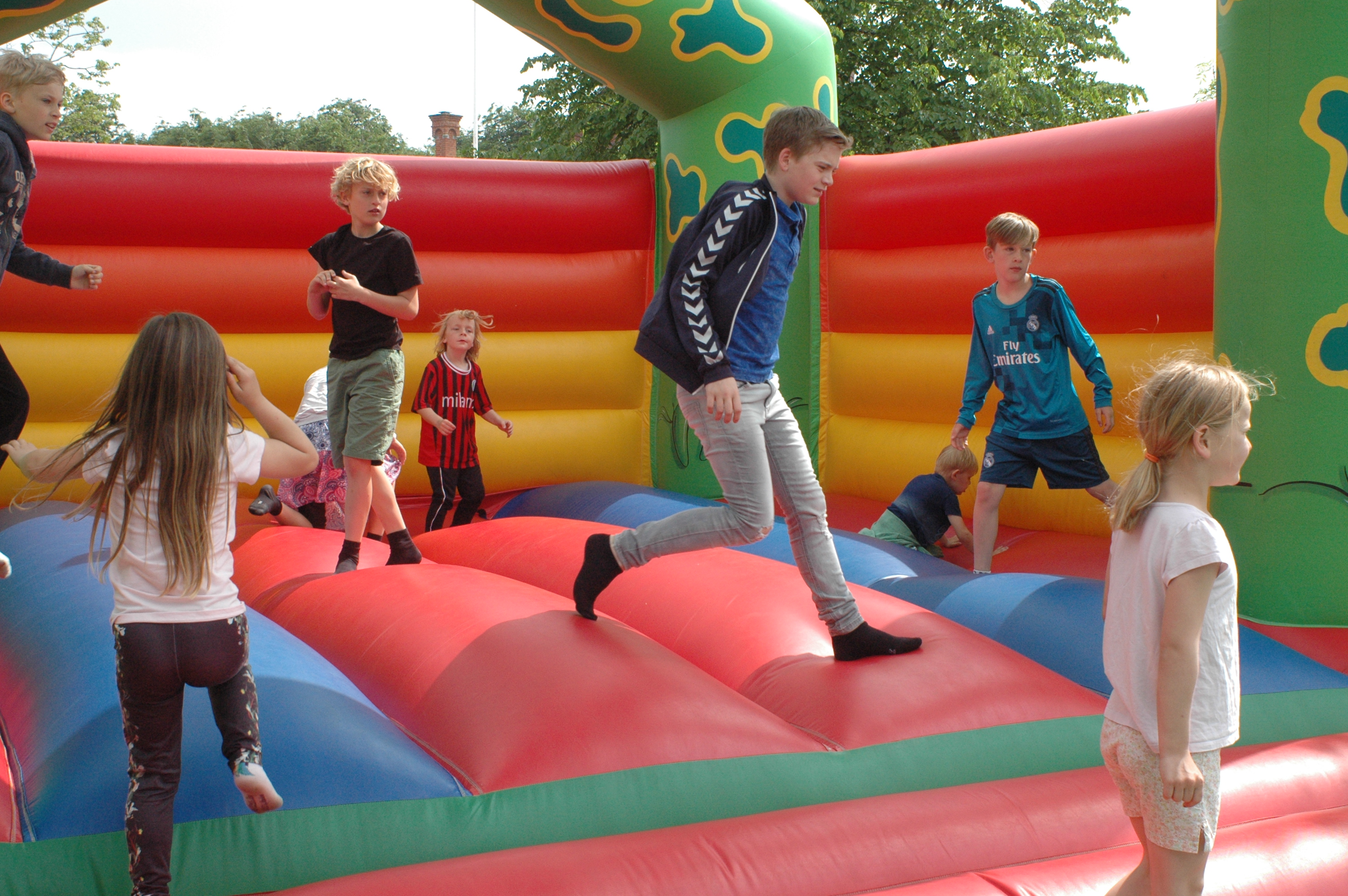 Godt vejr, hoppeborg, masser af glade børn, kolde øl og vand, varme pølser, ristede pølser og den gamle Ford A, der kører glade børn rundt i byen.