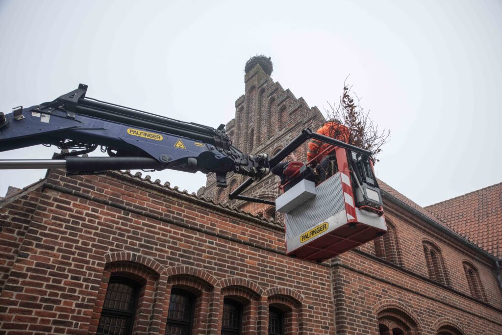 Vejret var upåklageligt til arbejdet, og nu er der kun at håbe på, at storkene finder og benytte de gode boliger i Nordens ældste by.