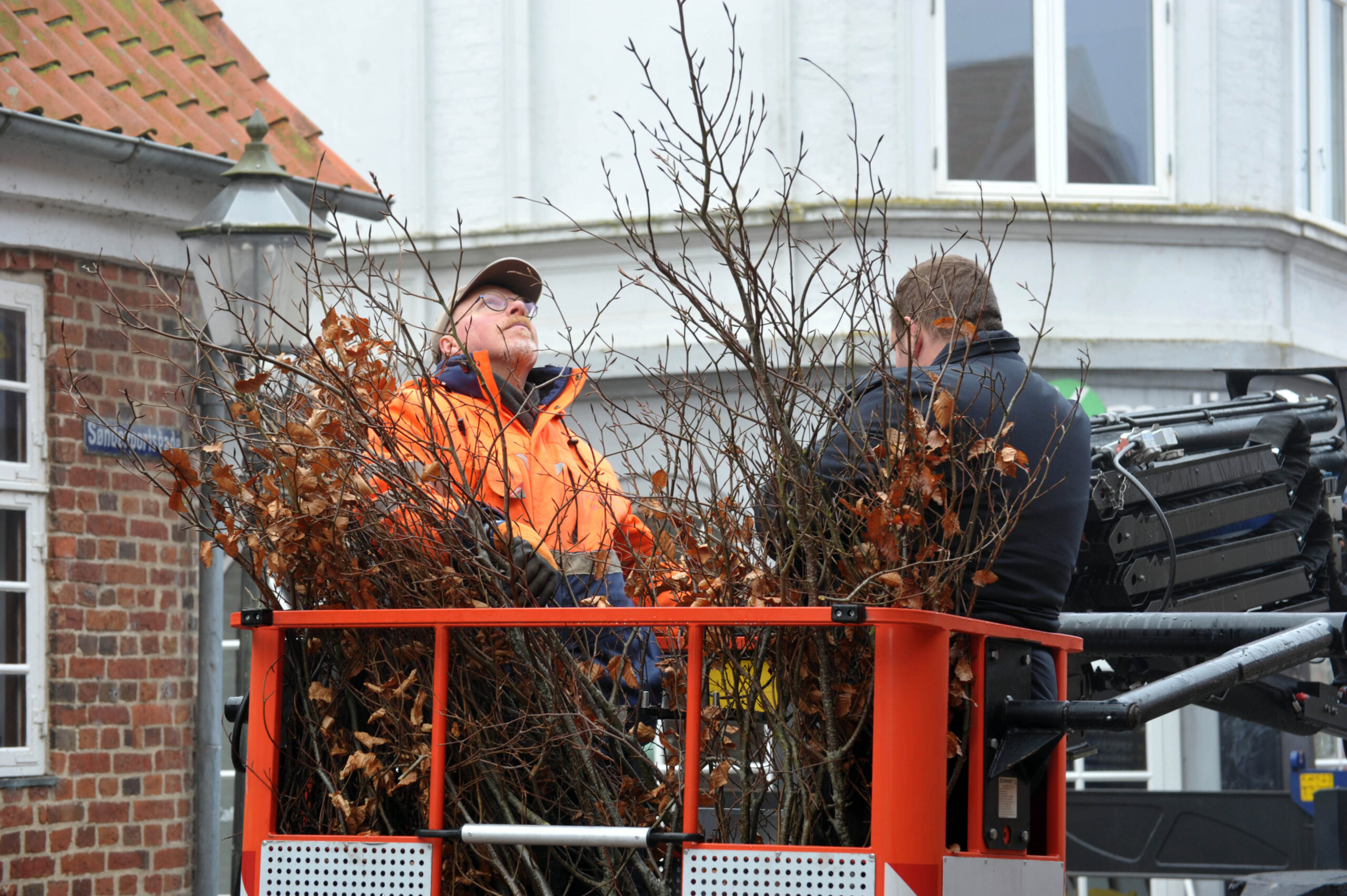 I midtbyen er der fem, og storkerederne blev søndag sat i stand, så de er klare til nye beboere. Det var storkeekspert Hans Skov, der forestod arbejdet ved hjælp af Farup Smedenes store kranbil, der med en mandskabslift med sikker hånd styret af Michael Vogt blev bragt til vejrs til rederne.