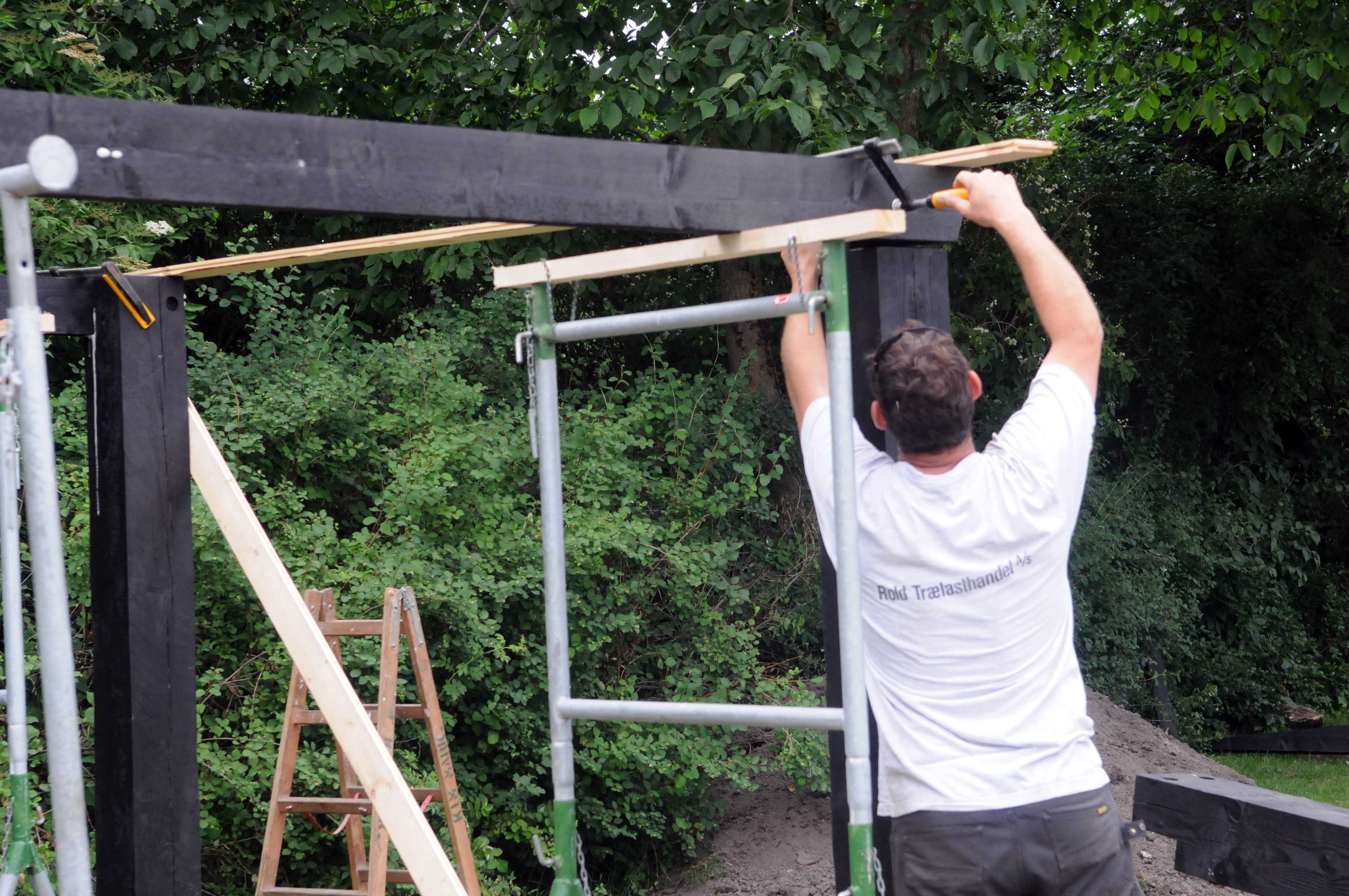 Kim Mark har tidlige arbejdet med Vikingebyggeri, hvor alt er lavet i materialer, hvor der ikke bruges søm og skruer i samlingerne.
