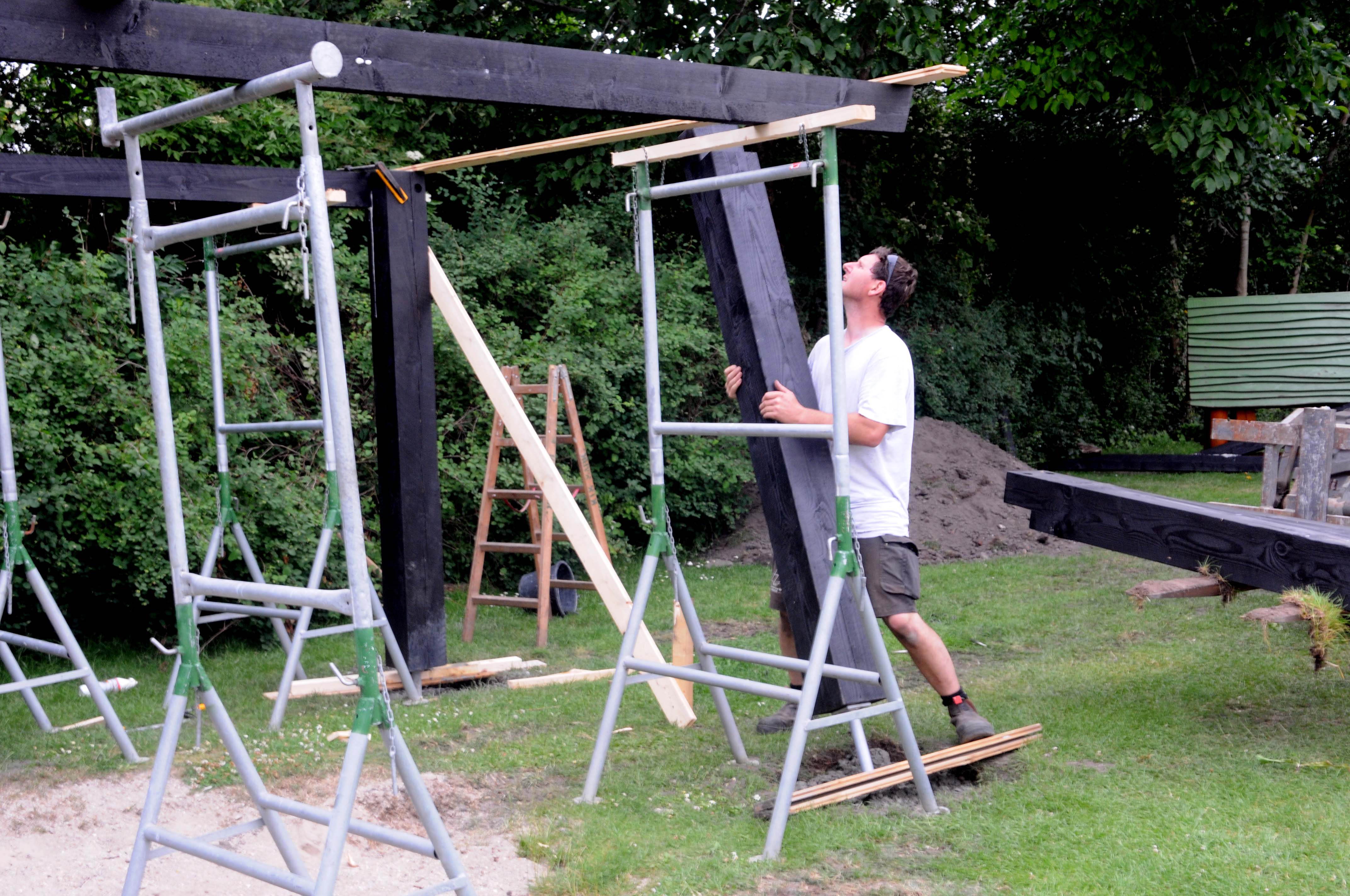 Kim Mark har tidlige arbejdet med Vikingebyggeri, hvor alt er lavet i materialer, hvor der ikke bruges søm og skruer i samlingerne.